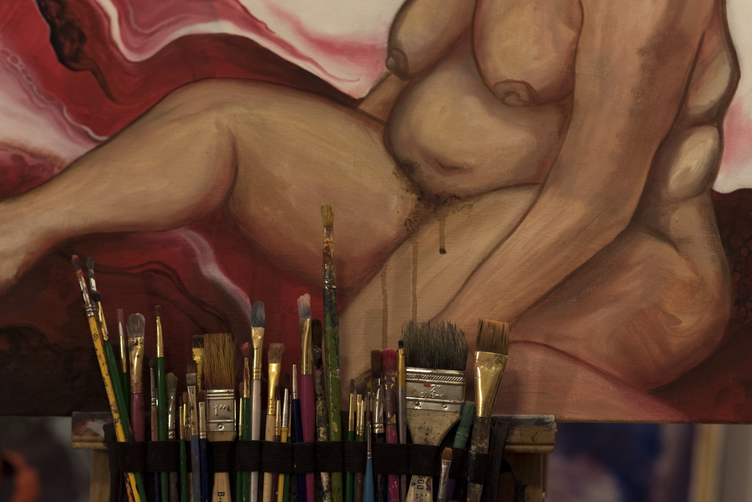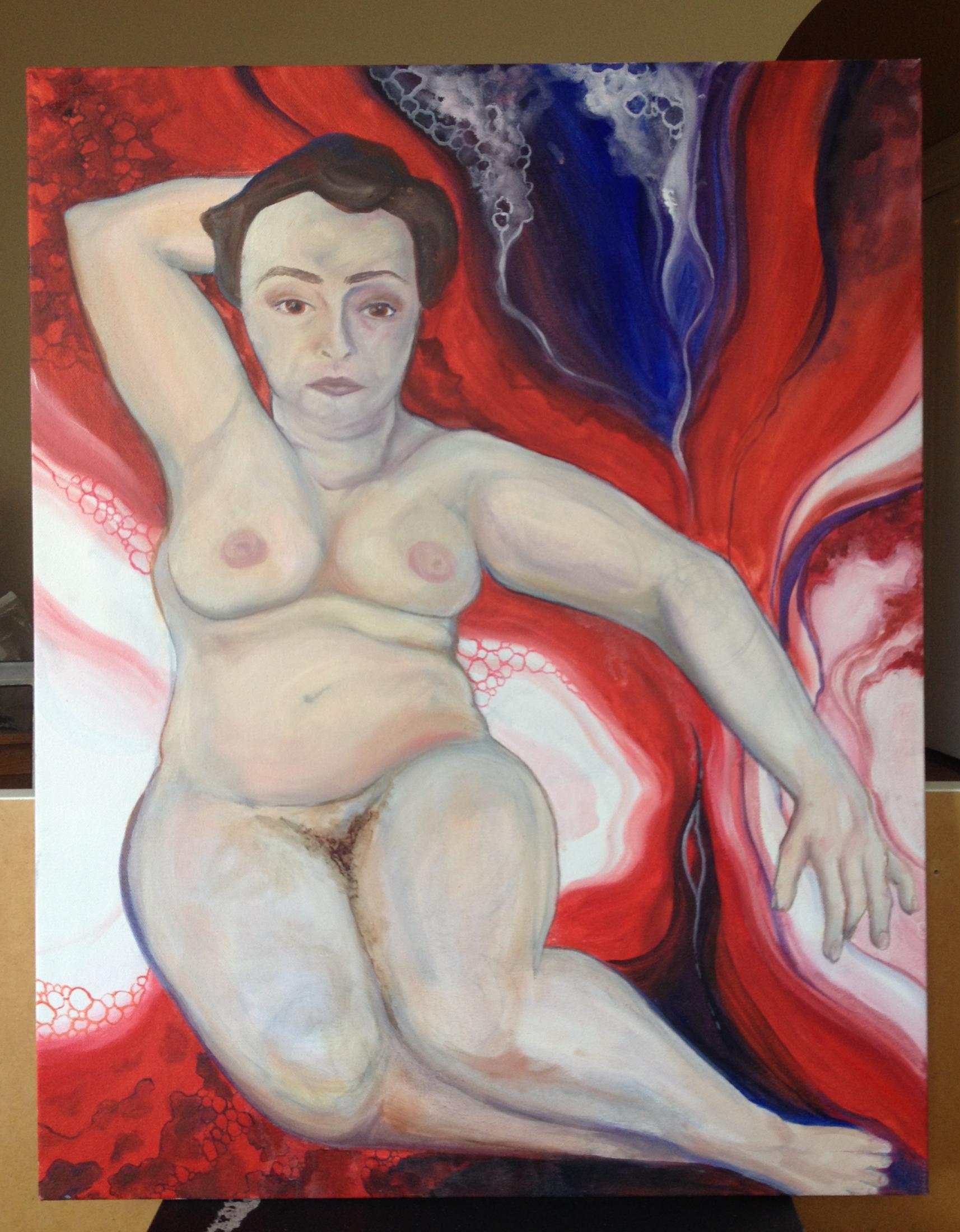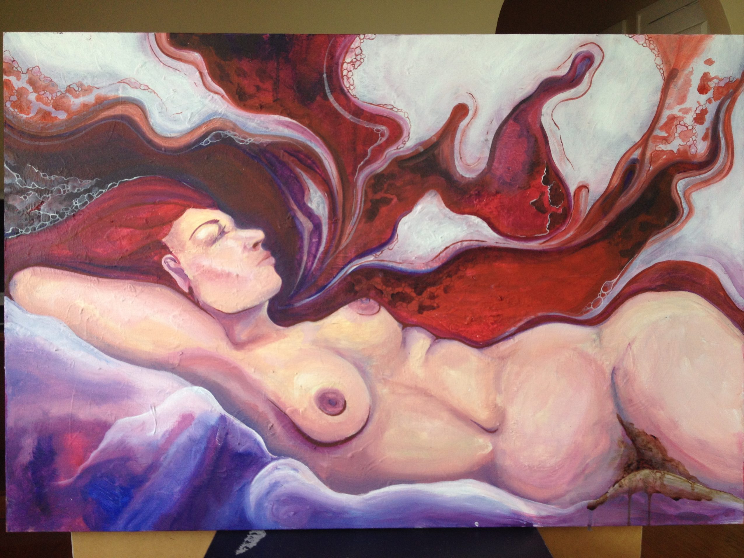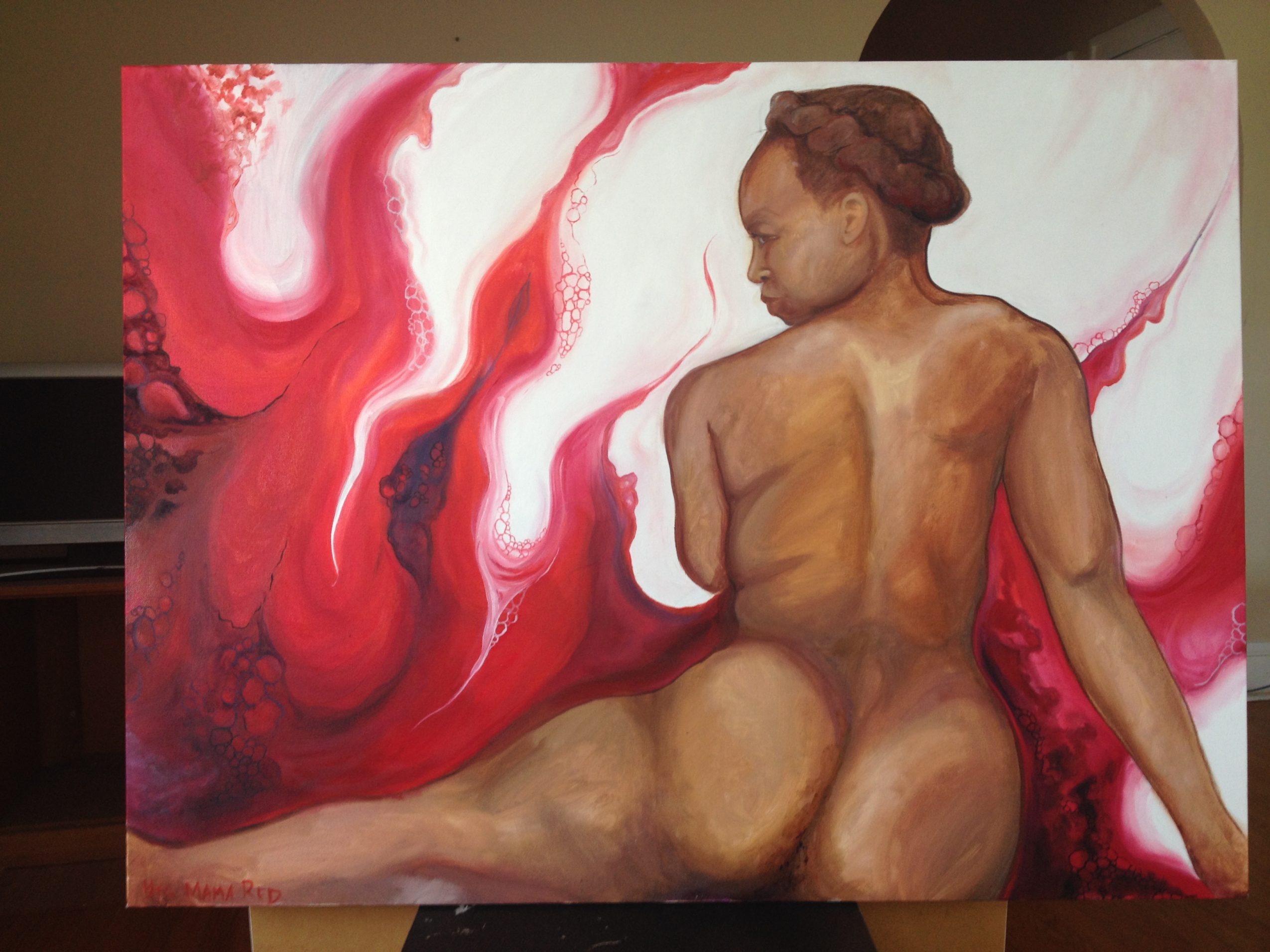Painting, on the other hand, allows me to access the part of my brain where creativity is a raw and intuitive experience. I get to look at a blank canvas, and it tells me what it wants to become. We get to have a conversation together, and there is no objective or need for the painting to end up at a specific place. My painting work explores the relationship between the female body and the female experience, and uses uncomfortable or jarring imagery to invoke thoughts about what it means to be a “woman”. As a painter, I identify myself under the pseudonym Big Mama Red.