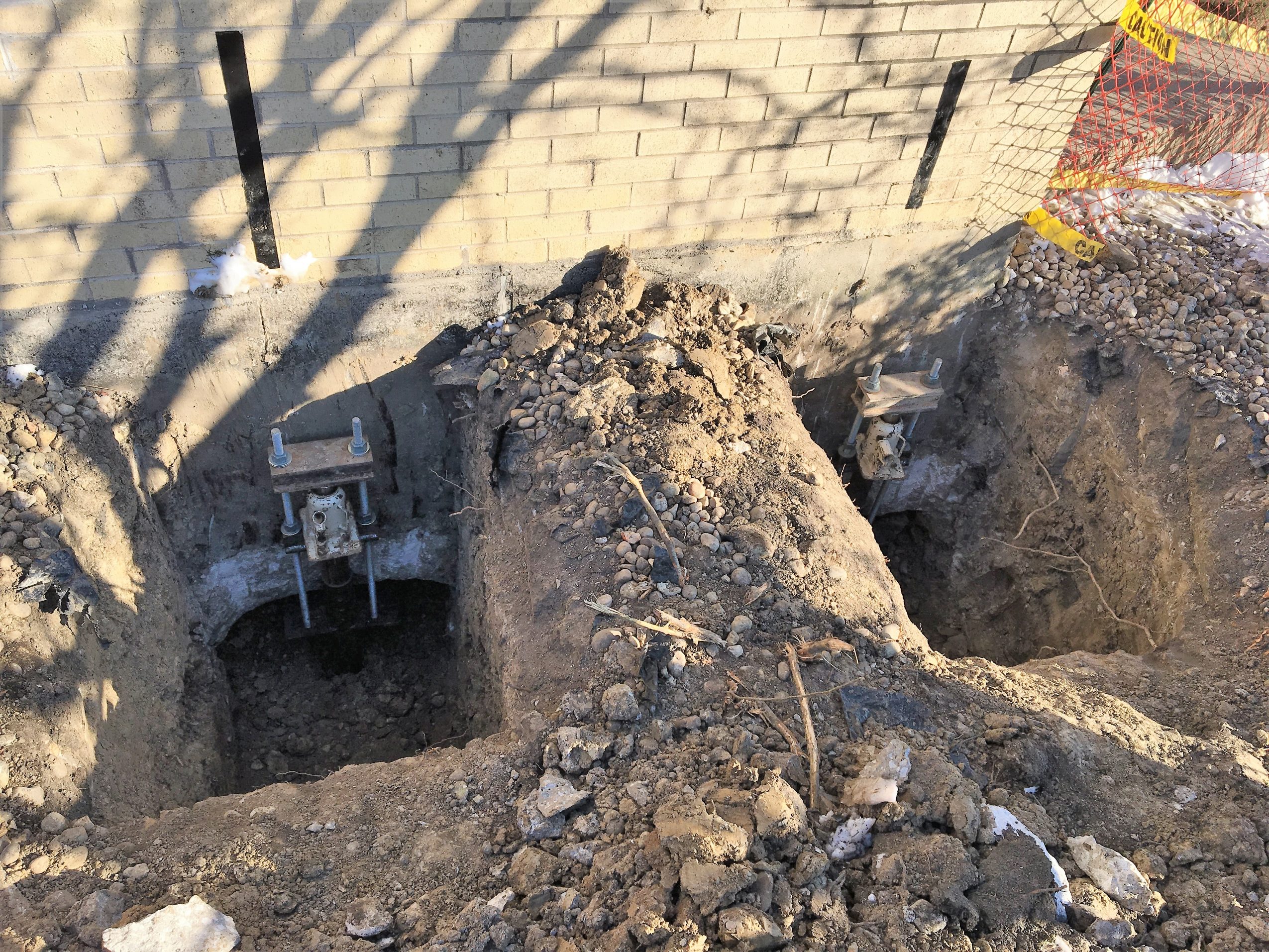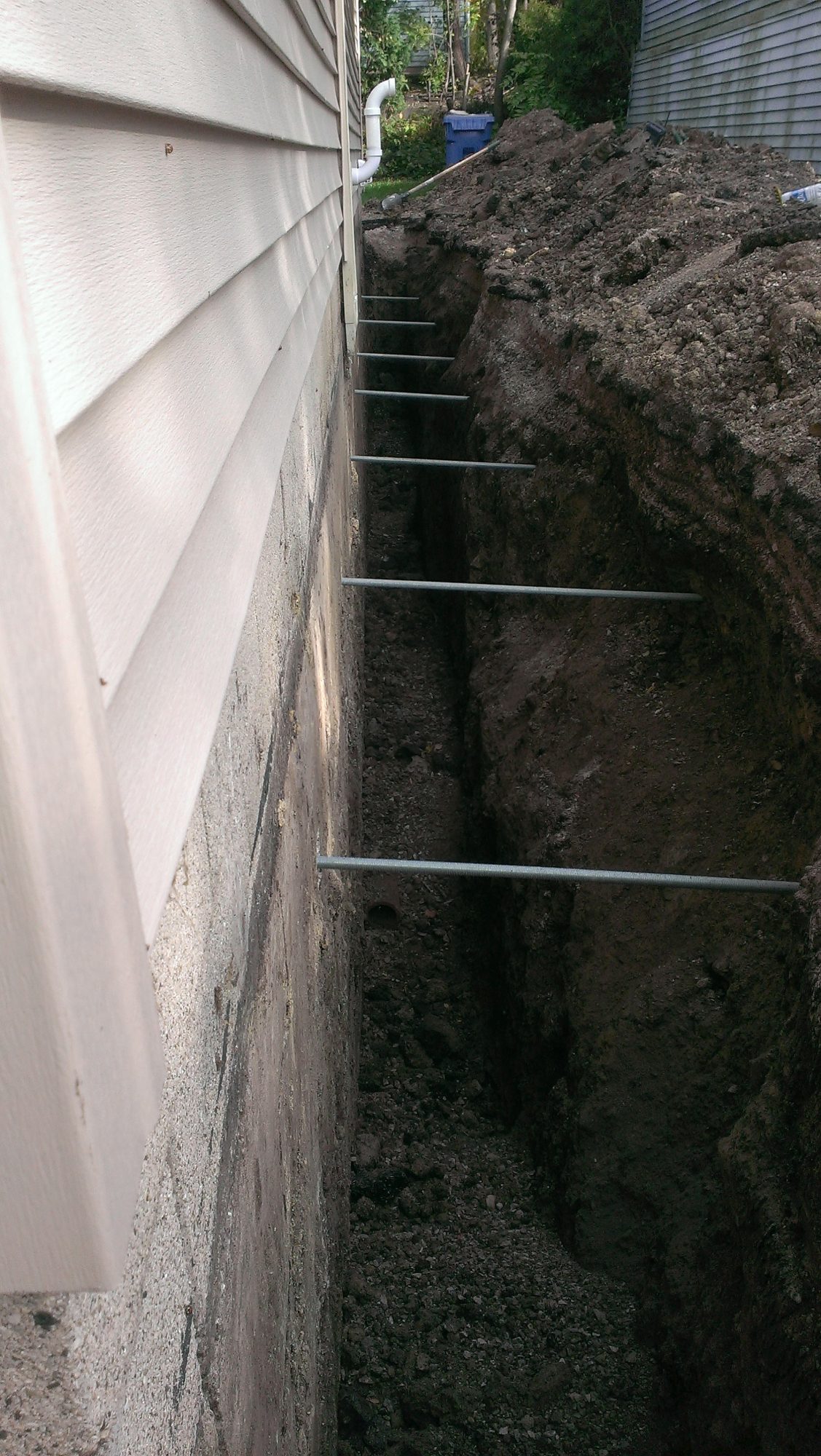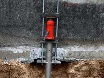 We have two ways to repair foundations: 1. Helical piers with brackets will lift a foundation that is sinking and stop vertical movement; 2. Wall Tie-Backs will straighten bowed-in basement walls and stop further horizontal movement.