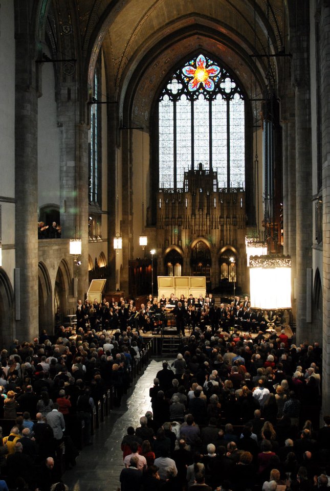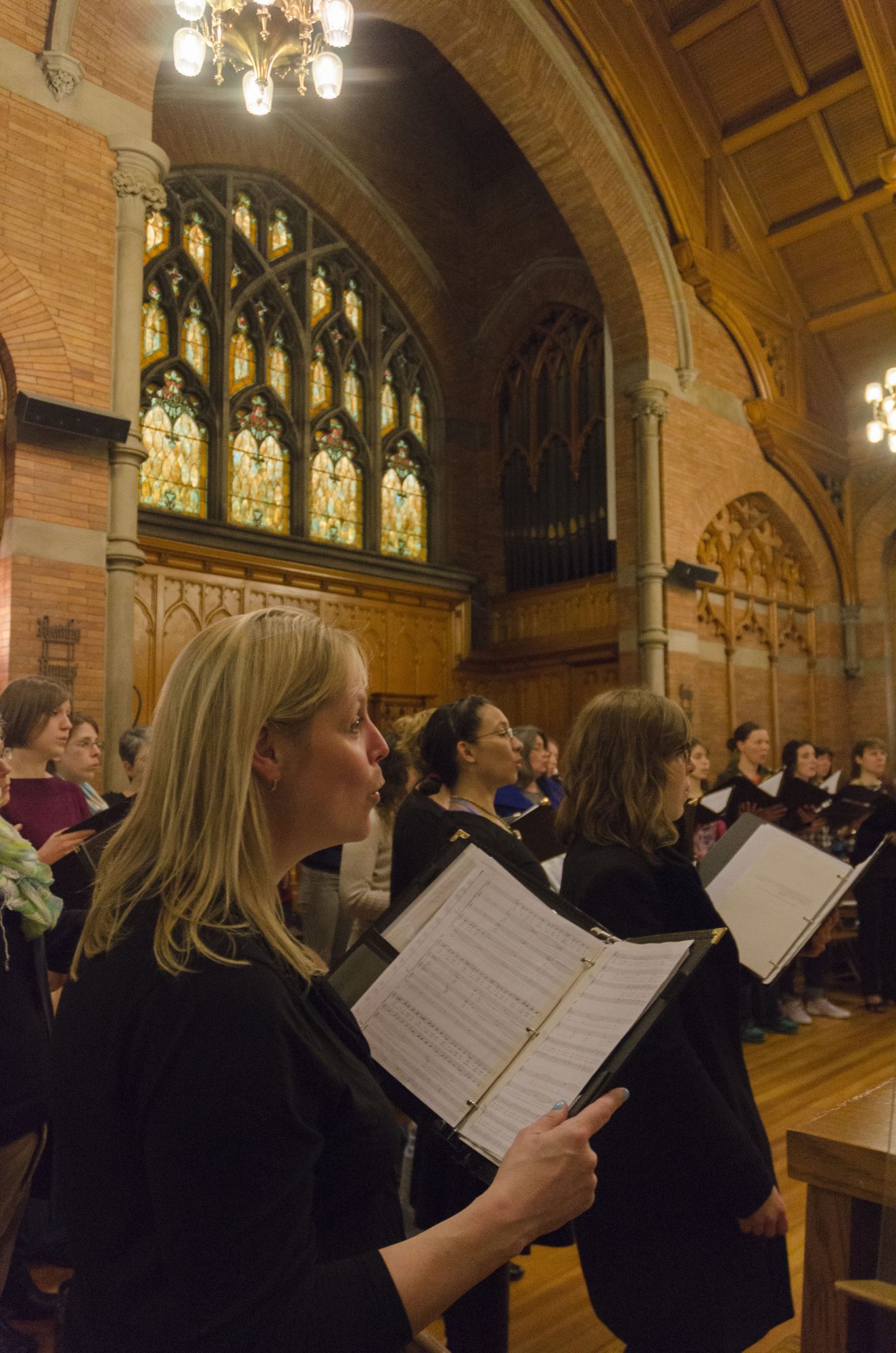 From the very beginning, our repertoire included both unaccompanied pieces, and large, orchestral works. The latter requires professional soloists. Orchestras and soloists are expensive– so we have been forced to grow, to expand our audience and donor base, to present concerts outside of Hyde Park– all of which has been very good for us. We compete successfully for the audience, and critical notice, with professional ensembles with much larger budgets than ours, and are able to maintain a regular roster of about sixty singers.