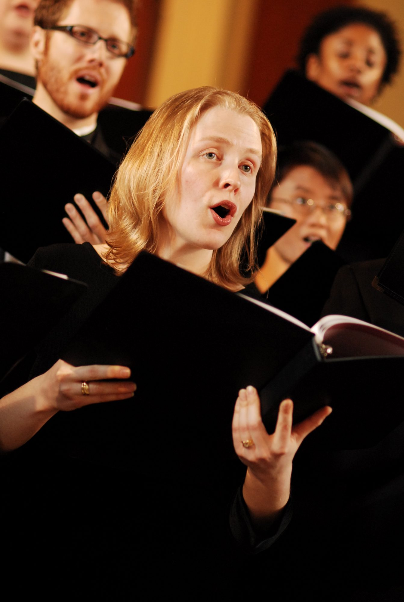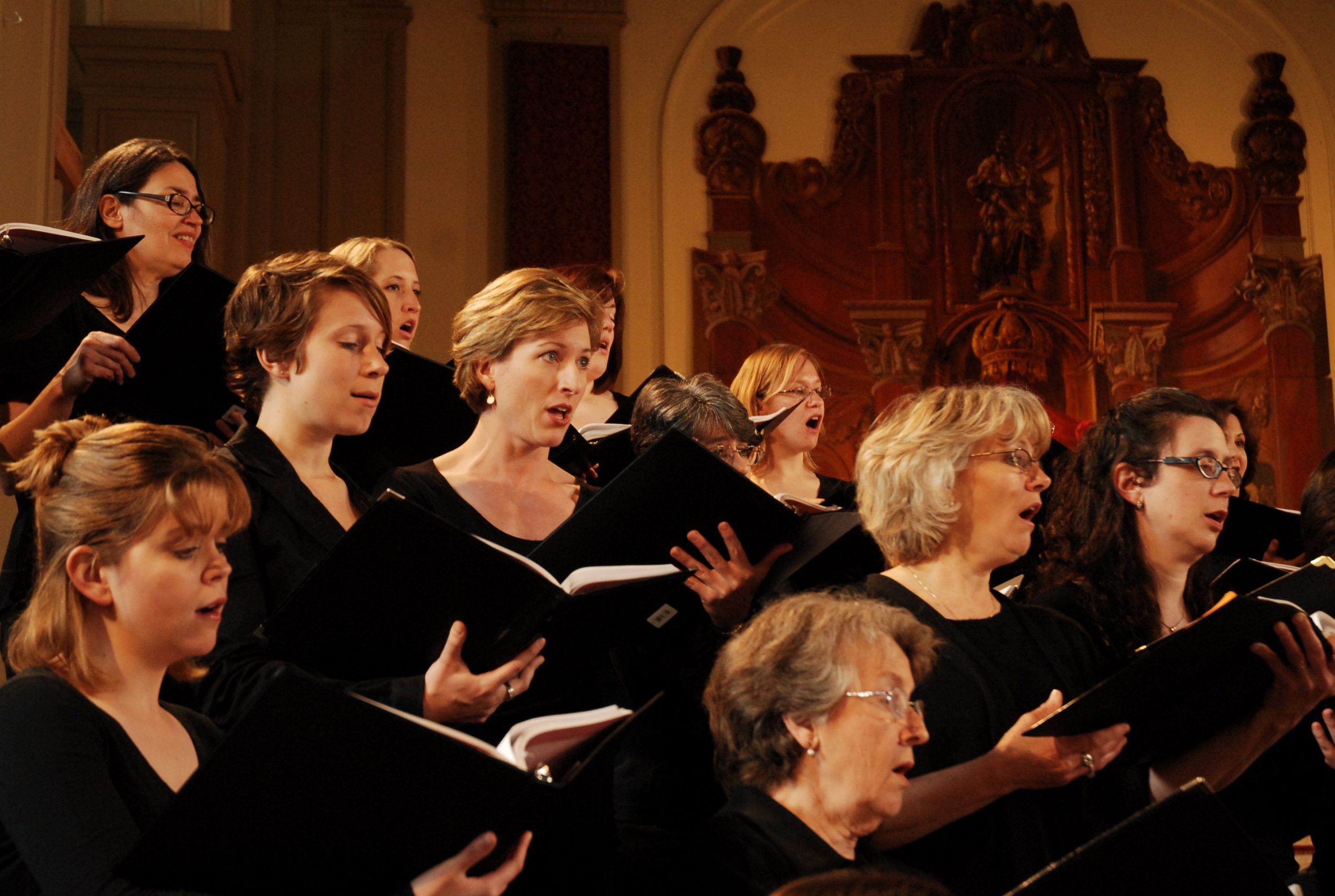 We are a choir of about sixty voices, which presents a series of three concert preparations per year, mostly in Hyde Park and Lincoln Park. Our repertoire is of the serious, high-art variety; our programs combine new, unfamiliar works with established classics, and smaller, unaccompanied works with major orchestral oratorios. Critics comment on our vocal purity, on our stylistic accuracy, and on our adventurous programming. We occupy a niche of our own; our members are not professional, union musicians, but neither are they casual or “amateurish”– we are very disciplined and we maintain high professional standards. We are frequently mentioned in “ten best performances” lists at the end of the year, along with such groups as the Chicago Symphony, Lyric Opera, and Music of the Baroque. People who do not know us, and have not heard us, do not at all expect this level from us, and we enjoy their surprise and disbelief.