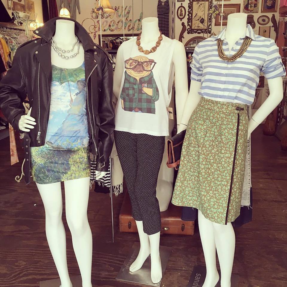 I am a resale boutique that carries modern and vintage clothing, shoes and accessories in women’s fashion but not only for women. I offer on-site styling and off-site closet organizing as well as 100% honest opinions on everything. My clients looking their best is more important to me than making the sale. Plus, you’re in a sense representing me and my shop. Gotta get you receiving those compliments!! Oliver and I, my right-hand shop dog and best pal (can’t believe I haven’t mentioned him sooner!), are here aiming to provide a safe place for all who love fashion and community. I’ve been told that my shop provides warmth and council and brings people together. Many new friendships have been made here by my clients as well as myself. There’s constant chatter and “playing dress-up” as I like to call it. “Girl” time, ya know.