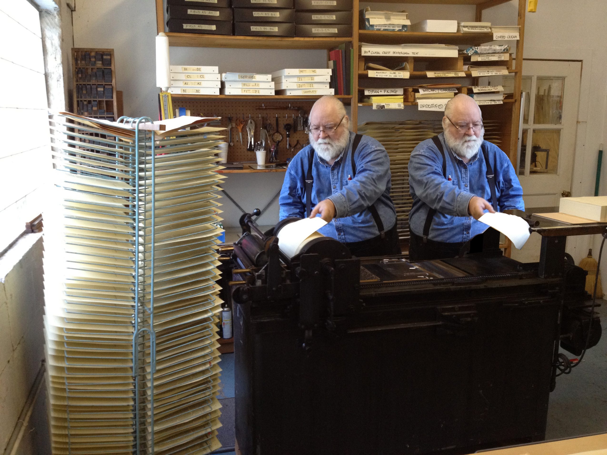 Finding cash to keep his press open and running, Jobson used barter for cash. To make sure he would have enough “cash” on hand, he published one 72-page, three-color, chap book with 100 copies. It required over 12,000 hand pulled impressions.