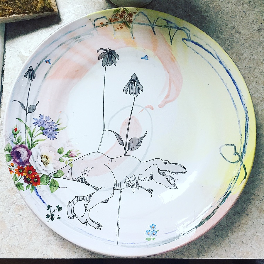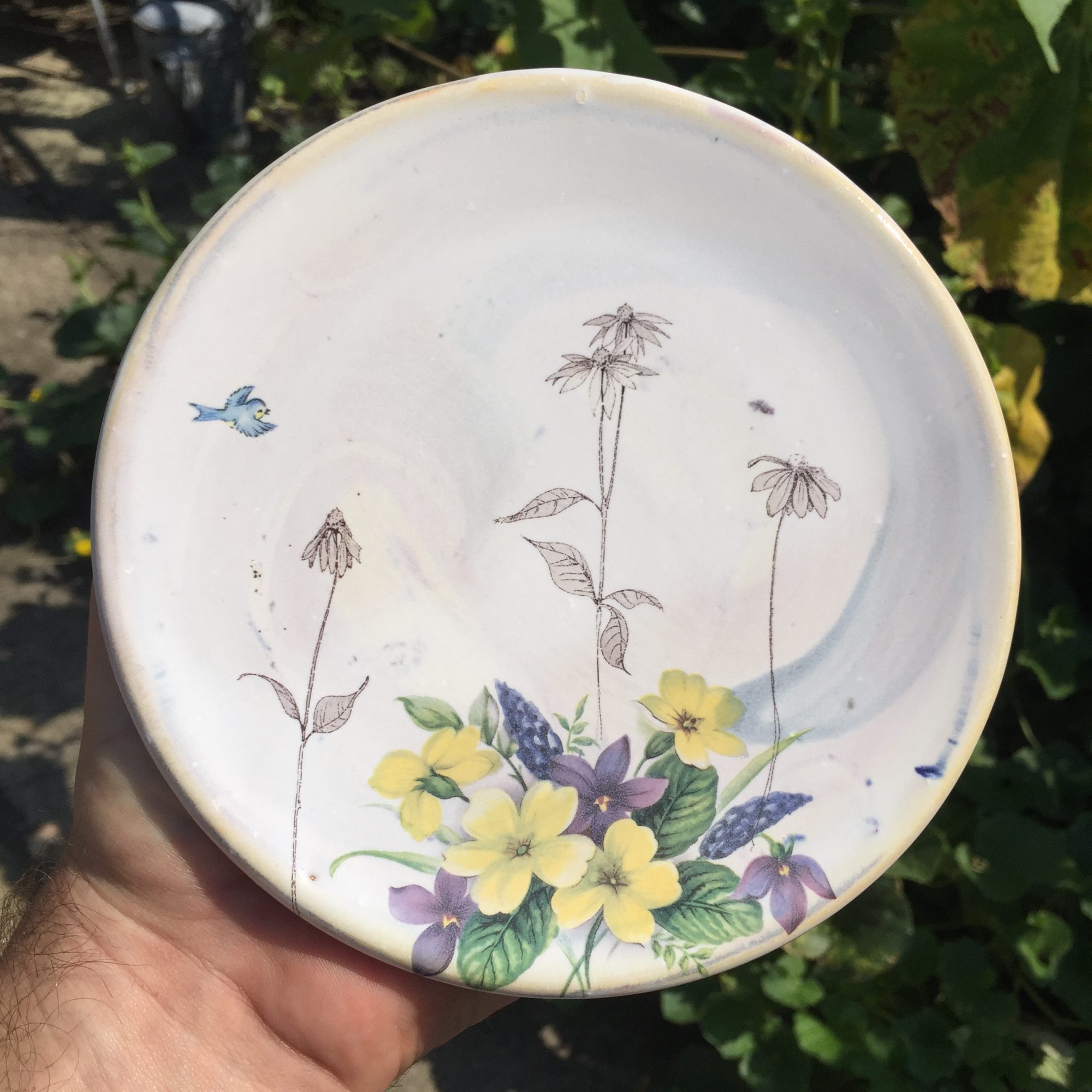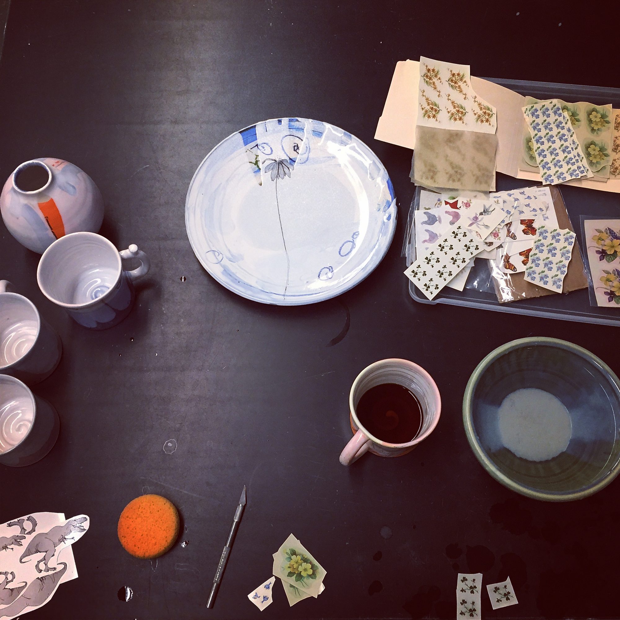 My most recent work has been described as “whimsical,” and I really like the feeling that invokes. I’ve always admired artists and writers like Tim Burton and Shel Silverstein- people who make everyday things seems extraordinary. I have been really inspired by flowers, so most of my current drawings are flowers. I like to combine my own drawings with decals I purchase and collage them onto simple forms that hopefully transform the way a mug can feel in your hand, or a vase can look on a shelf.