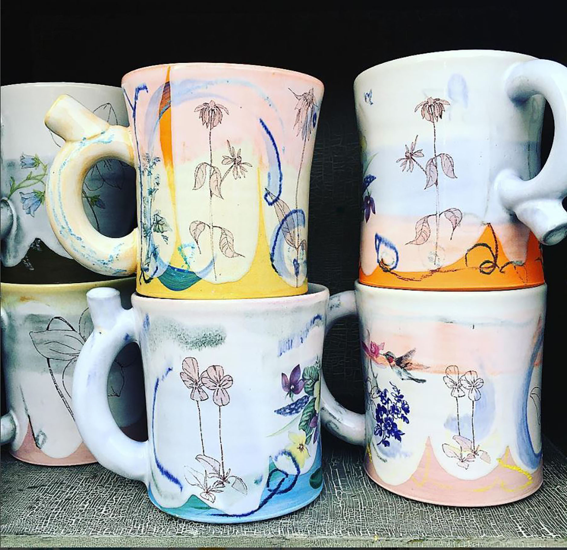 I am the owner, potter, social media/marketing team, accountant, janitor, repair man… you name it, I do it! Mostly, though, I specialize in making pots. I have recently re-fallen-in-love with drawing, and have been using my pots as canvases for my drawings. I have always thought of my pots as little usable pieces of art- meant to be handled and used, bringing an element of artfulness to everyday occurrences.