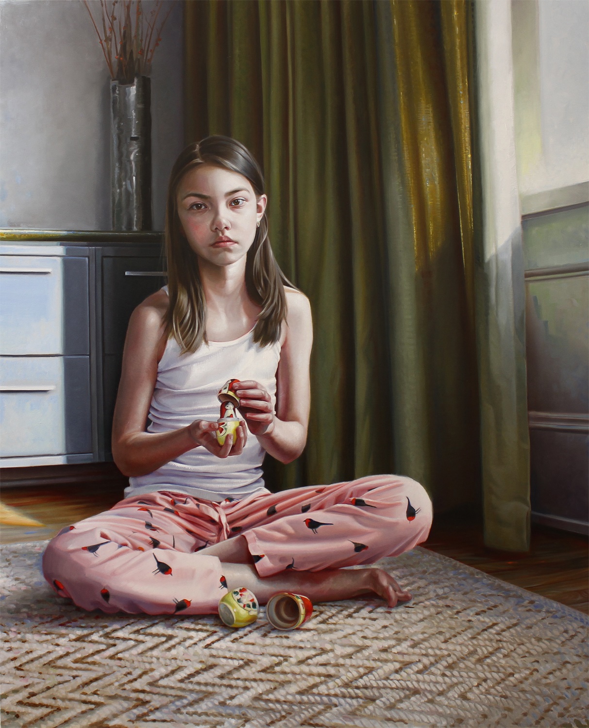 I do realist oil paintings, usually of woman and children. Right now I am not represented by any galleries, I work as an independent artist. I am a sensible person, and I think that shows in my work. When I am able to impregnate some solemnity in unimportant things, that feels like a reward to me.