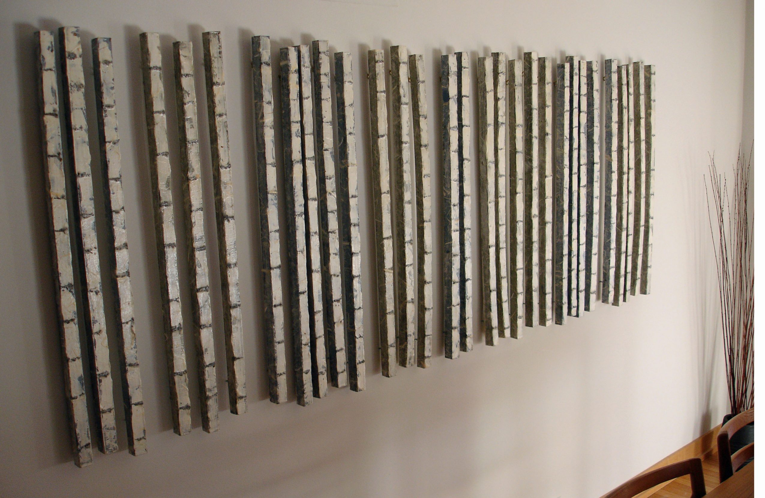 With his current collection, he tries to evoke a sense of place, peace, and calm within one’s soul. With many of his new pieces, he has incorporated delicate recycled papers, wood fibers and beach sand mixed with acrylic paints to create a greater depth to his work.