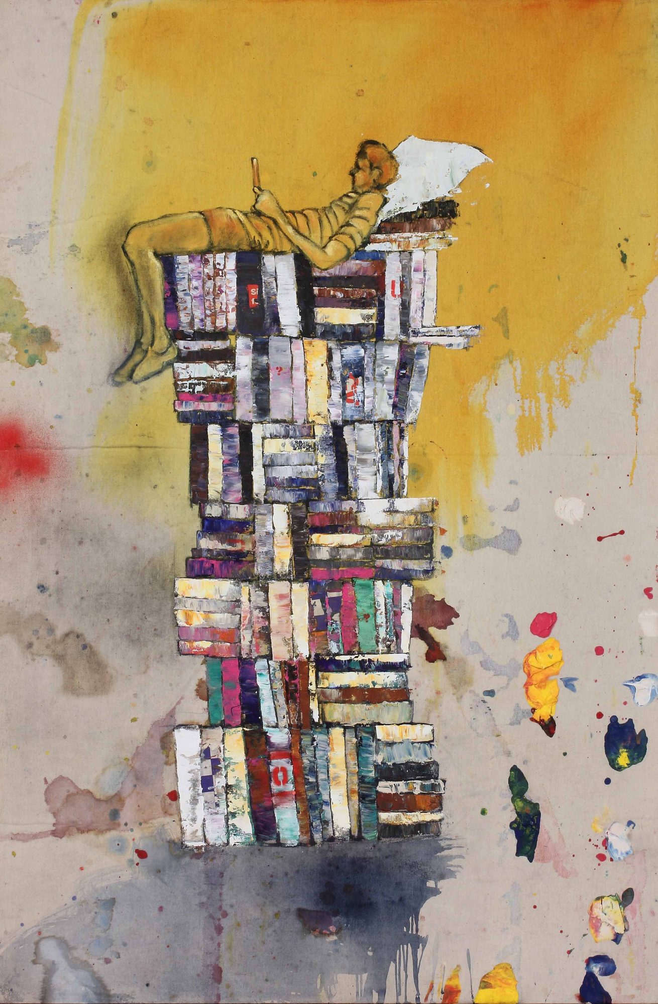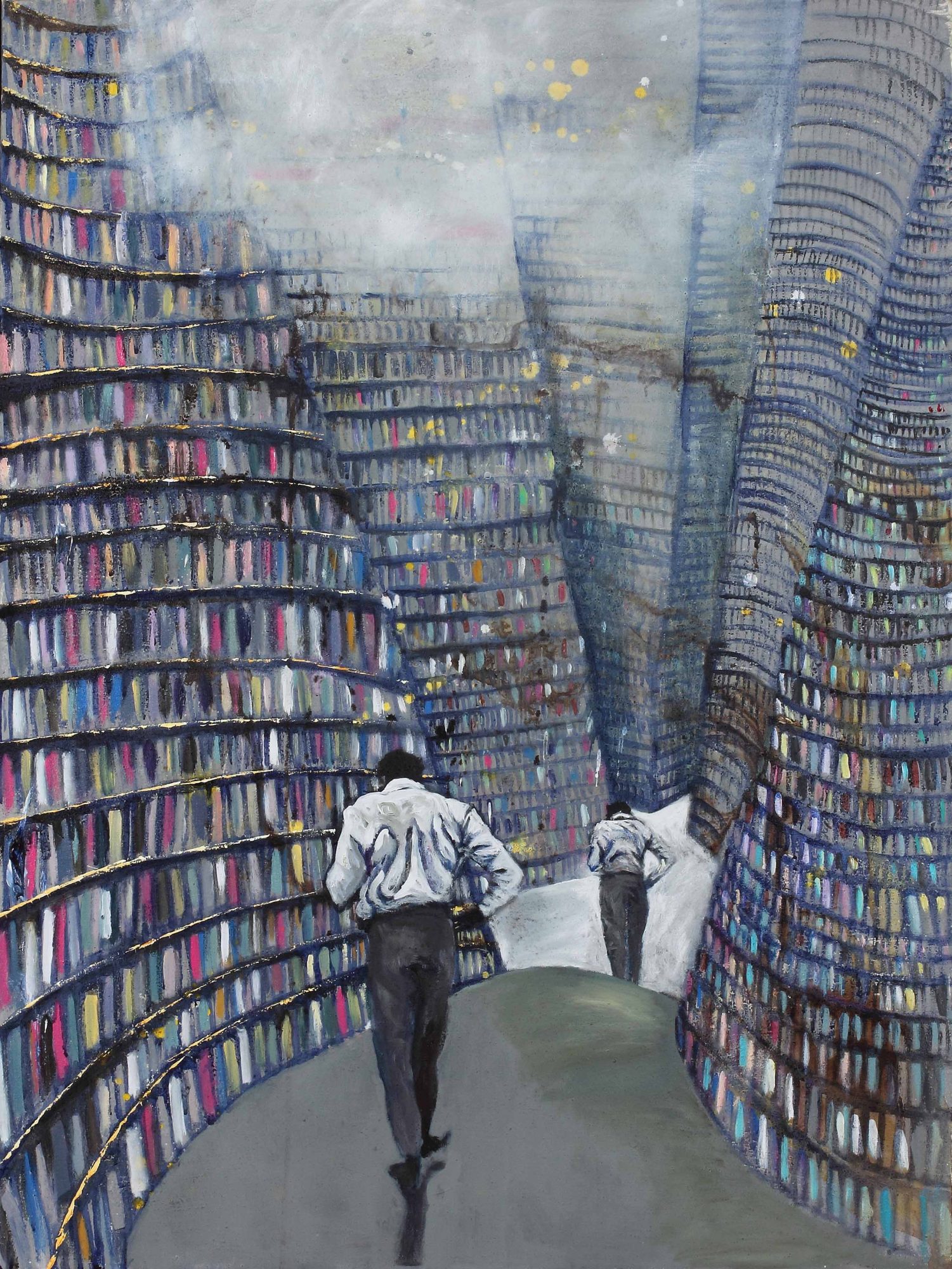 In my artwork, I combine my classical fine arts training with my keen-eyed examination of modernity, creating a running commentary on contemporary life expressed in a variety of media. In the last decade, I have explored the theme of books, libraries, knowledge and mass communication. In my latest works, I have incorporated more texture and abstracted my subjects.