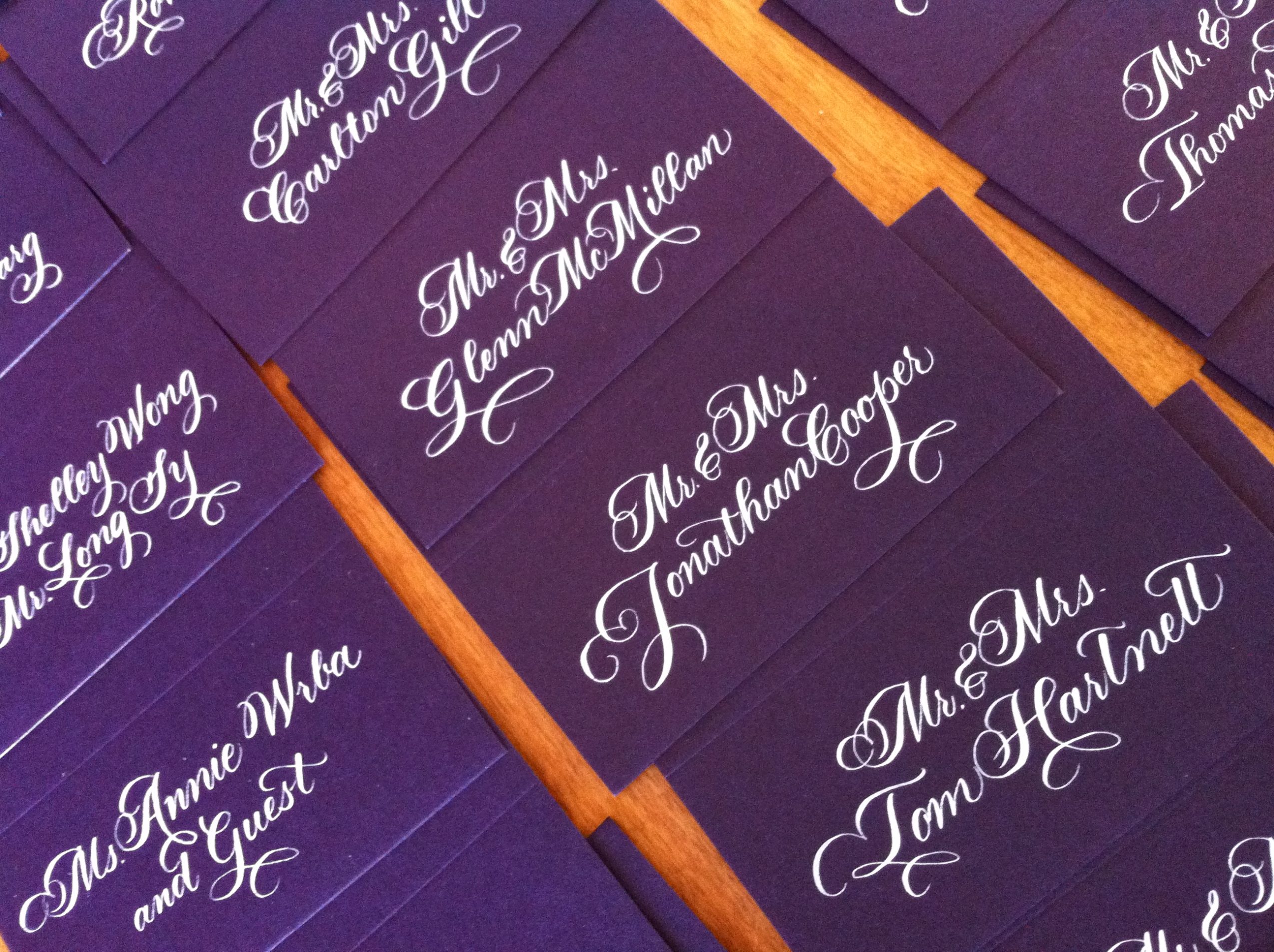 I specialize in hand calligraphy for weddings. I am a self-taught, left-handed calligrapher. I used vintage pens and ink that is made just for me. My work is spread throughout the world and is easily recognized by clients and fellow calligraphers alike. I work fast and hard, thus making my business appealing to anyone in the wedding industry. Most things are so last minute, thus the importance of being able to take on work at the last minute and complete it quickly.