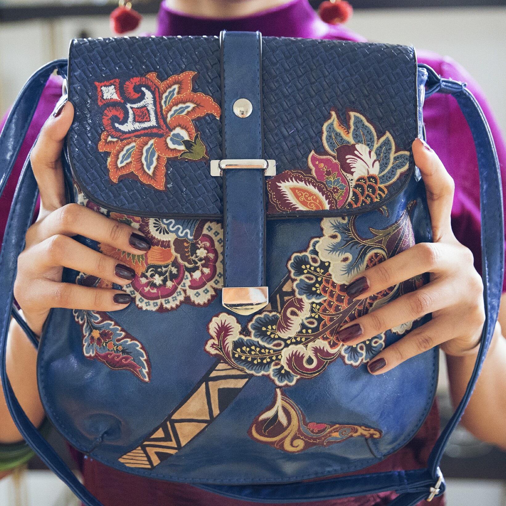 Image #10 (blue purse with floral design) photo credit: Mateo Zapata