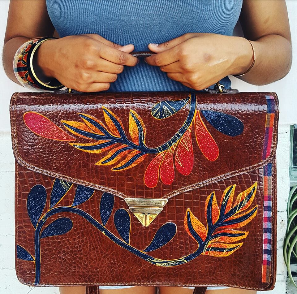 I specialize in redesigning and flipping recycled and vintage materials into a new fresh piece. I take a used purse, bag, or broken pair of earrings or used leather and I remix it. All of my pieces are one of a kind. This means that whoever buys the item knows nobody out there will have what they have, their piece is special. I think that is what sets me apart for sure. I also draw on the complexities and beauty of my culture. There are definitely folks out there who upcycle and repurpose bags and jewelry, but the context of my creations are unique. I am not afraid to uplift where I come from in my art or connect it to language, elements and customs unique to my culture and diaspora and what/who I grew up with. I find that people are drawn to this. Representation matters on all scales. Even in my photography and marketing, I am intentional on having models, settings and tone be aligned to this upliftment.