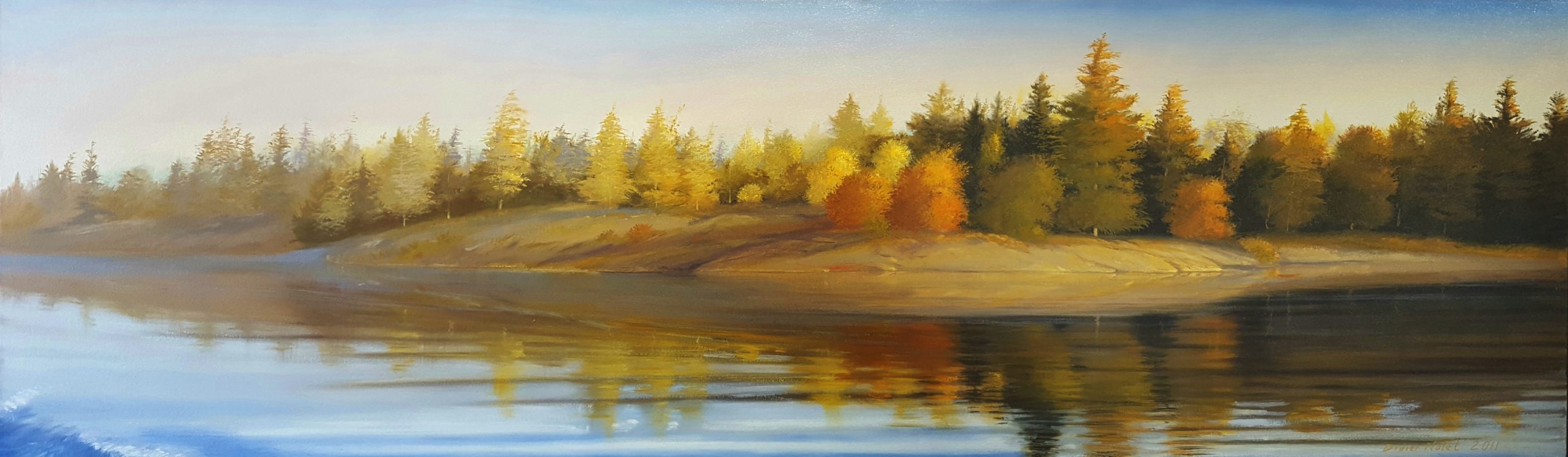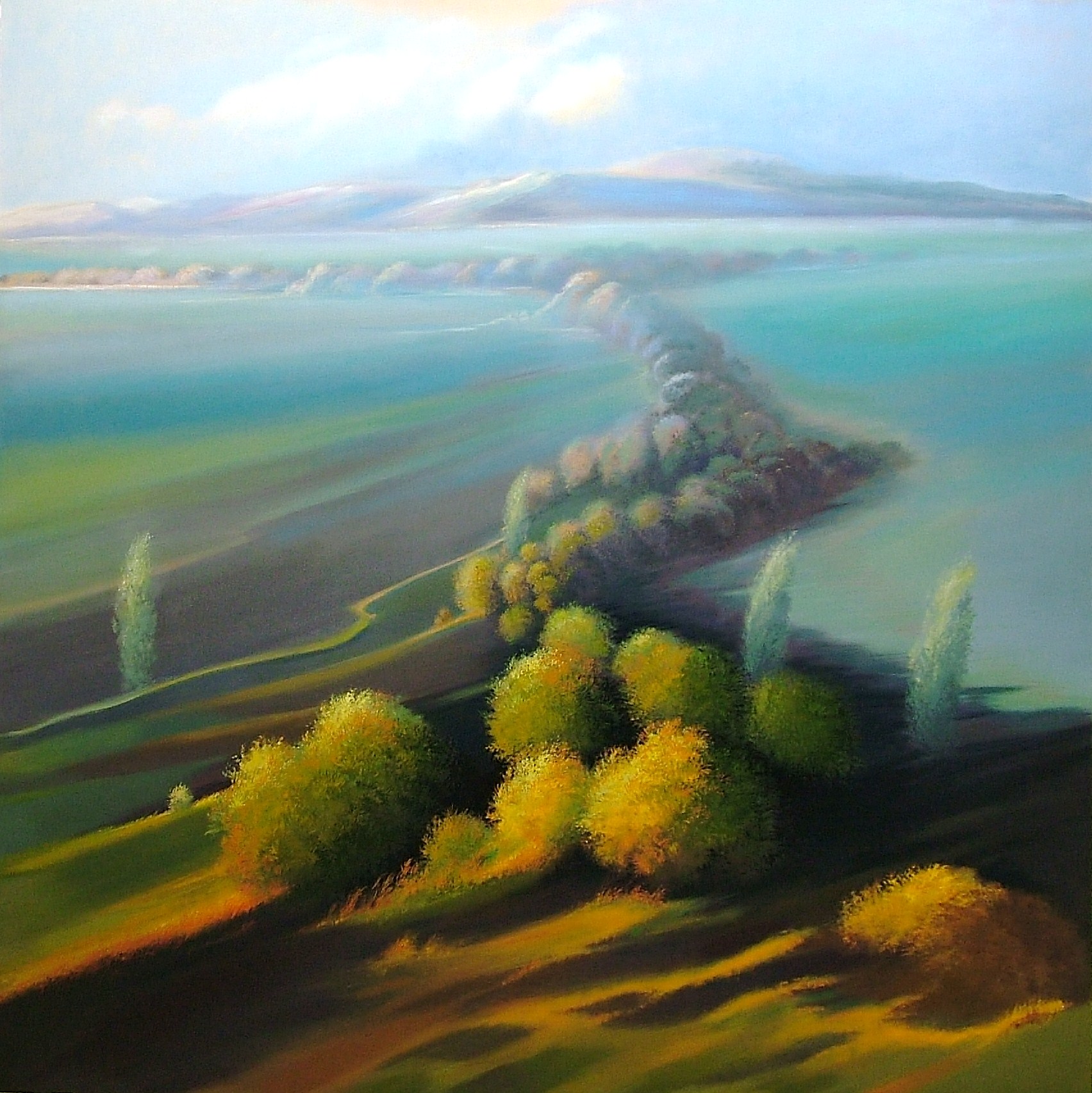 After he met a young American who was traveling through France, he moved to Chicago in 1979. She became his wife. This move had a strange effect on him. It brought back many of his childhood memories. These memories were so strong that he knew he had to put them on canvas. He started to paint imaginary landscapes that reflect a blending of his childhood memories (he never uses photographs or any other visual support). Over time, these paintings became more and more an expression of his state of mind, which in turn, was affected directly by what happened in his life. Some paintings came out serene, others dark and somber.