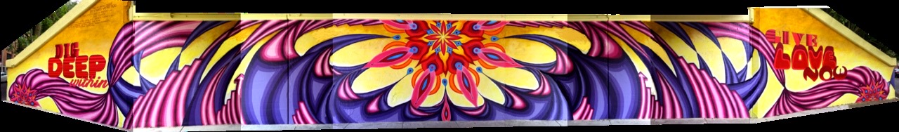 1. ‘Dig Deep Within, Give Love Now’, Mural, 10′ x 104′, Acrylic and spray paint on concrete