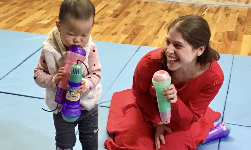 The thing we’re most known for is our infant/toddler music class, Broadway & Me which combines the best elements of traditional baby music classes: toys, instruments, bubbles, and puppets with live music and a team of professional teaching artists who bring the songs and stories of Broadway musicals to life.