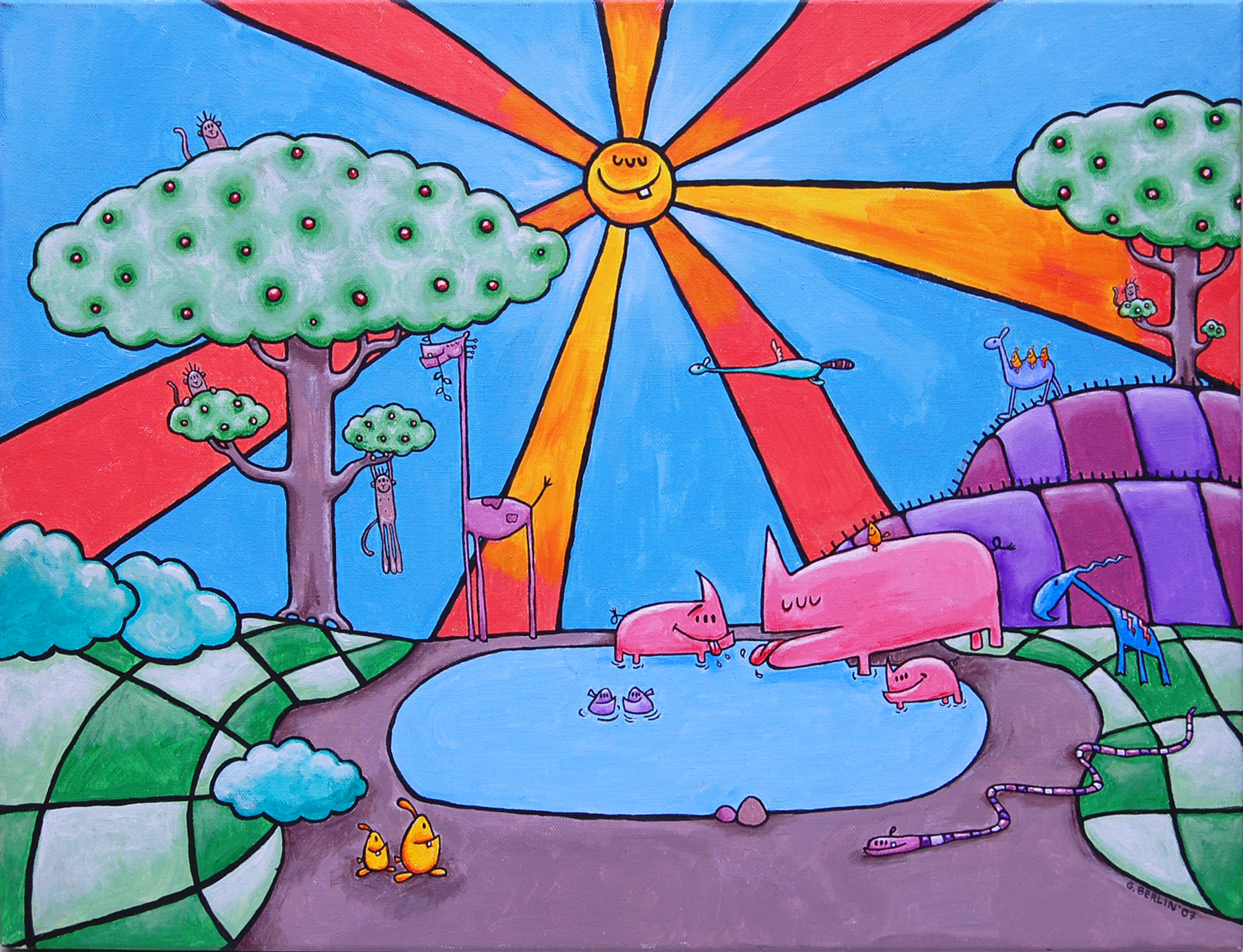 My creative life has taken me to Pakistan to teach school kids storytelling, all around the US for interactive light festivals, and into boardrooms, firehouses, monasteries, and all manner of interesting places. My paintings of fun and whimsical monsters and colorful critters have sold to patrons all over the planet.