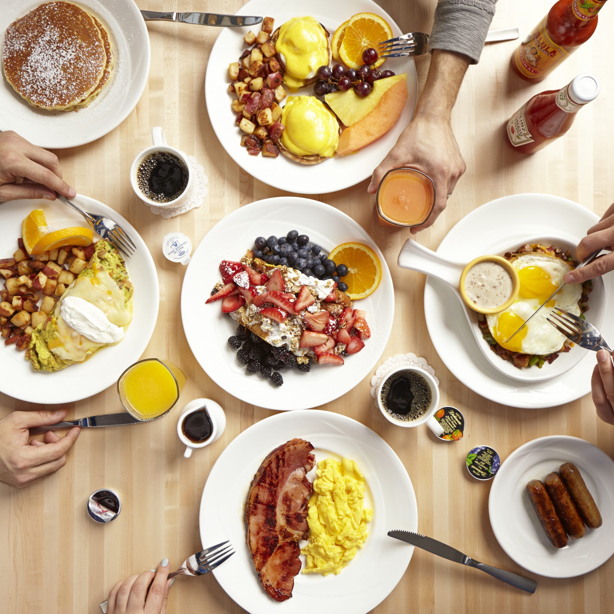 Yolk is best known for brunch. We serve around 5 million eggs a year and that number continues to increase every year. We have savory options like our classic Eggs Benedict, Chicken ‘n’ Waffles or our Corned Beef Hash & Eggs. If you are a sweet breakfast fan you will love out Red Velvet French Toast or Nutella Crepes.