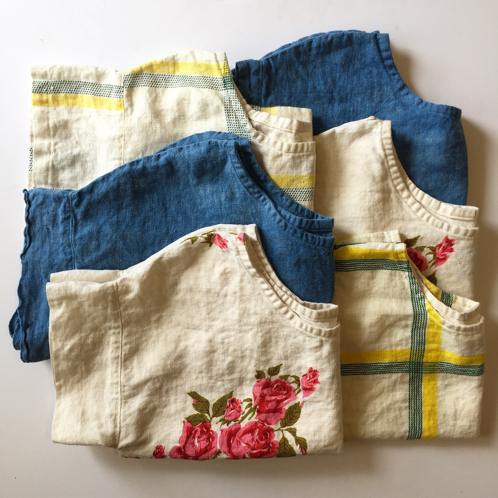 The shop is a mix of my smaller work (hand-knit hemp washcloths, zines, box tops, pot holders, etc.) and a few larger, more involved pieces (quilts, an apron re-sewn from an army jacket, etc.). Most of the work I do can be categorized as traditional women’s work. I make clothing, quilts, weavings and I draw and write mostly about women and food and clothing and memory. The majority of my cloth work is done with recycled fabric, which is a very old school practice that is regaining popularity. I cut up old clothes and repurpose them into quilts. I thrift vintage linen tablecloths and make them into the clothing of my own design. I have an indigo vat in my basement, so I do some of my own dyeings as well. I find practical things to be so beautiful and I strive to make pieces that will stand up to a good deal of use.