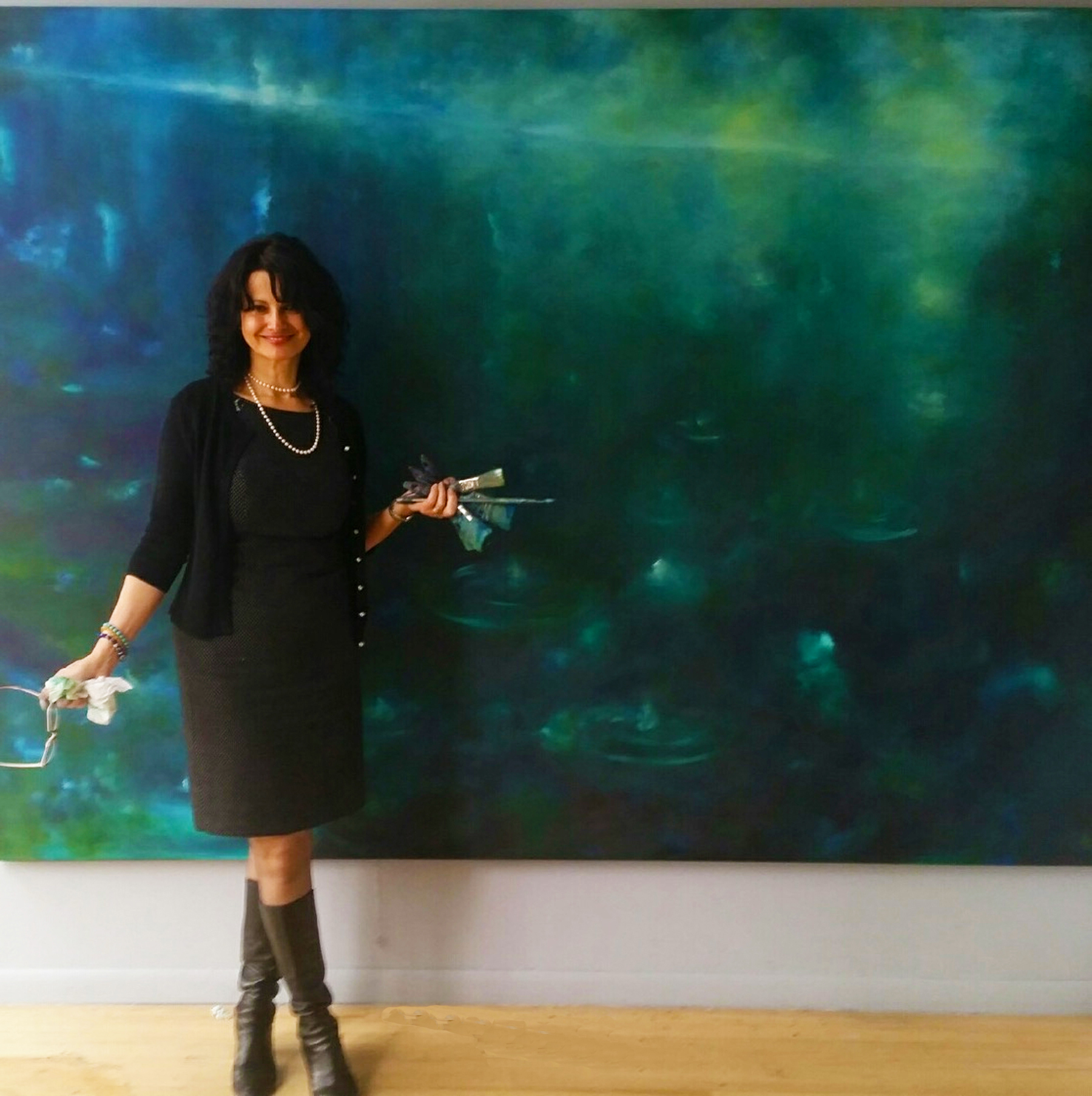 That was another step to put my life into perspective. With the reassurance that my DNA was in action, one poem led to another until I was ready for my words to be visually defined. And so the paintings began to unfold. As I explored the visual poetry, I felt I needed to go deeper into the realm of the creation. Isn’t that what religions strive for? I discovered mathematics and physics, quantum mechanics, string theory. All those stars in the sky, I realized were nothing more than another extension of humanity. I learned that all the elements in our bloodstream are the same elements that comprise a star. And what my ancestor Ibn ‘Arabi, Rumi and all the mystical poets wrote about was that interconnection of the human being with the universe. And that is what I had been searching for my entire life. That we are the same as a star. How beautiful is that?”