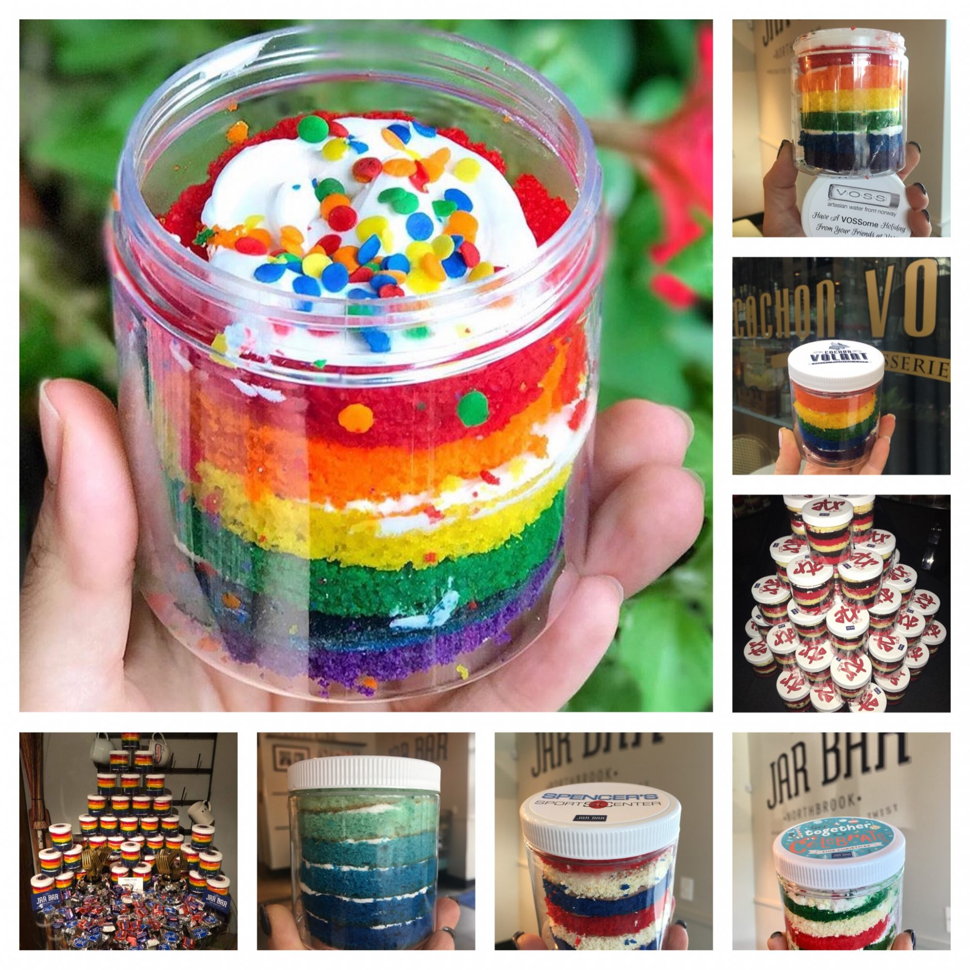 Our Cake Jars have been featured in USA Today and on the Food Network. Jar Bar expanded their Cake Jar line and now offers Cake Jars at various grocery store chains, restaurants, and even hotel chains. Our Cake Jar program also serves local events–weddings, corporate events, mitzvahs–with our customization options. Cake Jar lids can include brand logos, art, clever and witty messages, even personal pictures. Cake Jars are trending as a “value-add” product– customers often share their cake jar moment with friend and family and over social media. In early 2018, we will launch Cake Jar Nation– an e-commerce site for national shipping options for our signature Cake Jars.