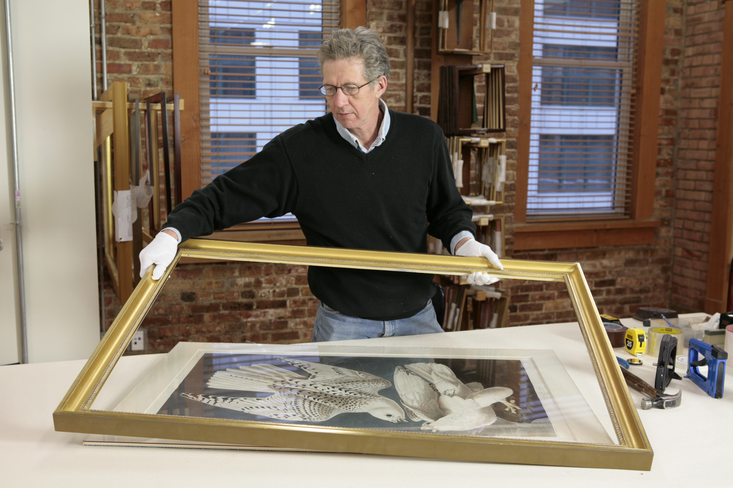 Our natural history art inventory is among the foremost in the world and that is evidenced by our collector base which is international. Ninety percent of the conservation and restoration work we do is shipped to us from throughout the United States. Our framing practice employs a meticulous custom approach and is geared toward important works of art. That is not to say that we don’t frame many pieces of lesser value when the owners want to know the work is being executed in the best possible manner.