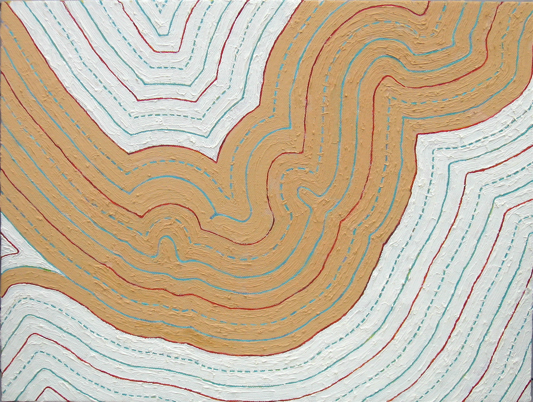 I am very process-oriented when it comes to my own practice of making art. Through the physicality of making art I draws parallels to my mother and her friends, laborers, immigrants. In my paintings, stitches and markings of color struggle to fit in with one another, wanting to harmonize into a larger composition. The stitches and colors work hard to challenge, investigate and dissect these indifferences in order to create and be a part of something bigger. A visual representation made up of small individual pieces.