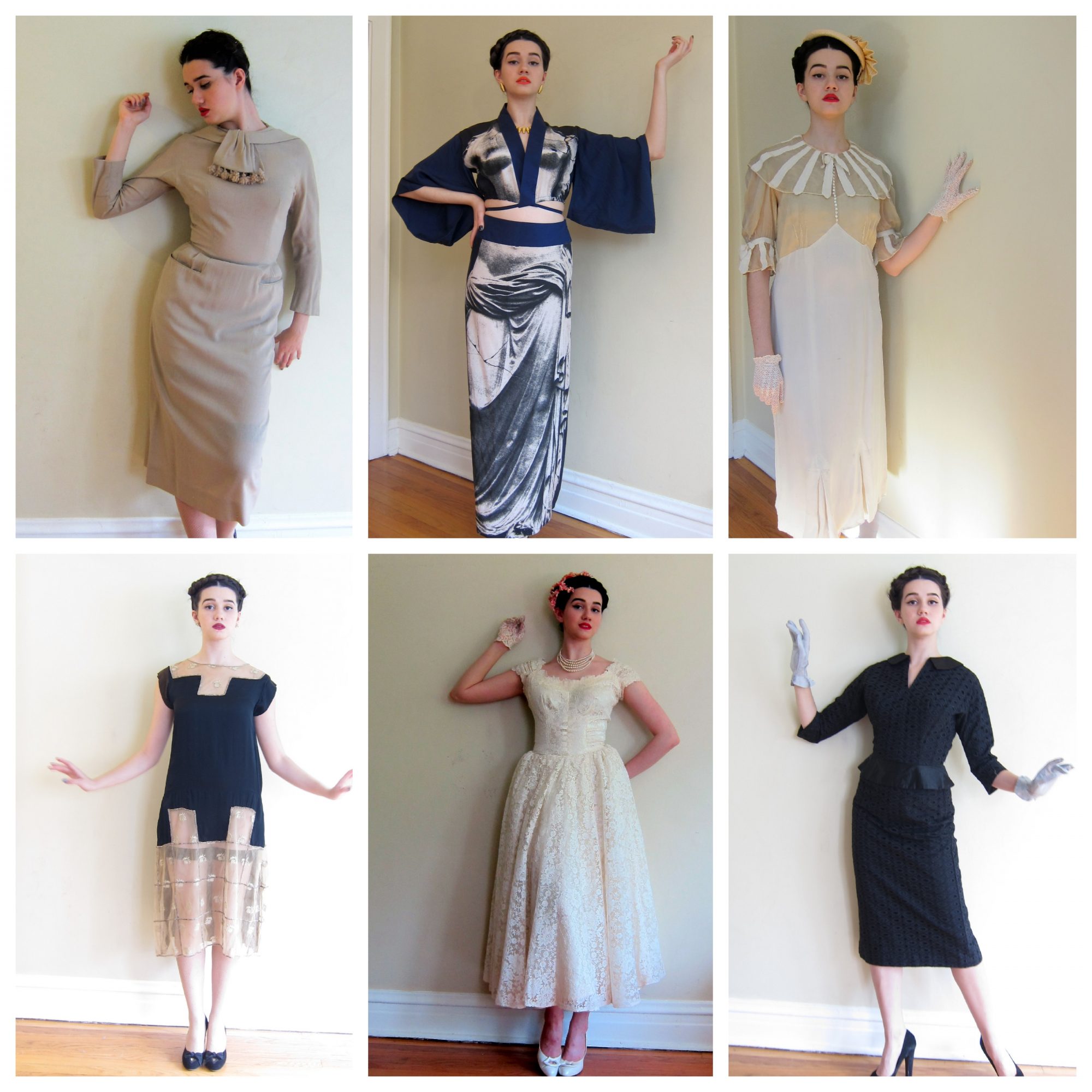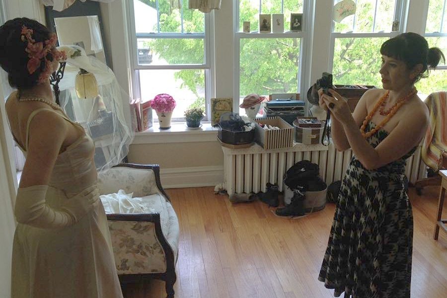 I sell women’s antique and vintage clothing online via Etsy and sometimes by appointment from my home studio in Evanston. I am known for using real ladies, not mannequins or professional models to display the pieces, as well as my styling — I mix and match decades and am not afraid to get theatrical, experimental, and humorous.