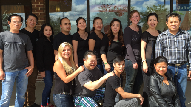 My team at Julie’s Nails do manicures, pedicures, gel fills, pink and whites, acrylics, gel, dip gel and eyebrow waxing. We specialize in pink and white, custom design and dip gel. I am proud to share that we always keep up with the new trending demands and always one of the first salons to come up with new ideas to make nail polish dry quicker, protected by gel top coating to prevent smudging and extended lasting longer.
