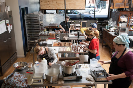 Katherine first ventured into the world of artisan confections at the age of 10, when she would use cream from her family’s Jersey cows to create soft, old-fashioned caramels on their small Wisconsin farm. “Katherine’s Karamels” were sold at her Dad’s office for 25 cents each, and quickly became a local favorite. Soon, her caramels and truffles were highly anticipated gifts every Christmas. In the fall of 2006, Katherine Anne Confections was launched in Chicago to rave reviews, and in 2012 Katherine opened her cafe in the Logan Square neighborhood at 2745 W Armitage. Today, you can find Katherine in her kitchen at the cafe, stirring caramel and rolling truffles just like she did at age 10, but with a lot more chocolate.