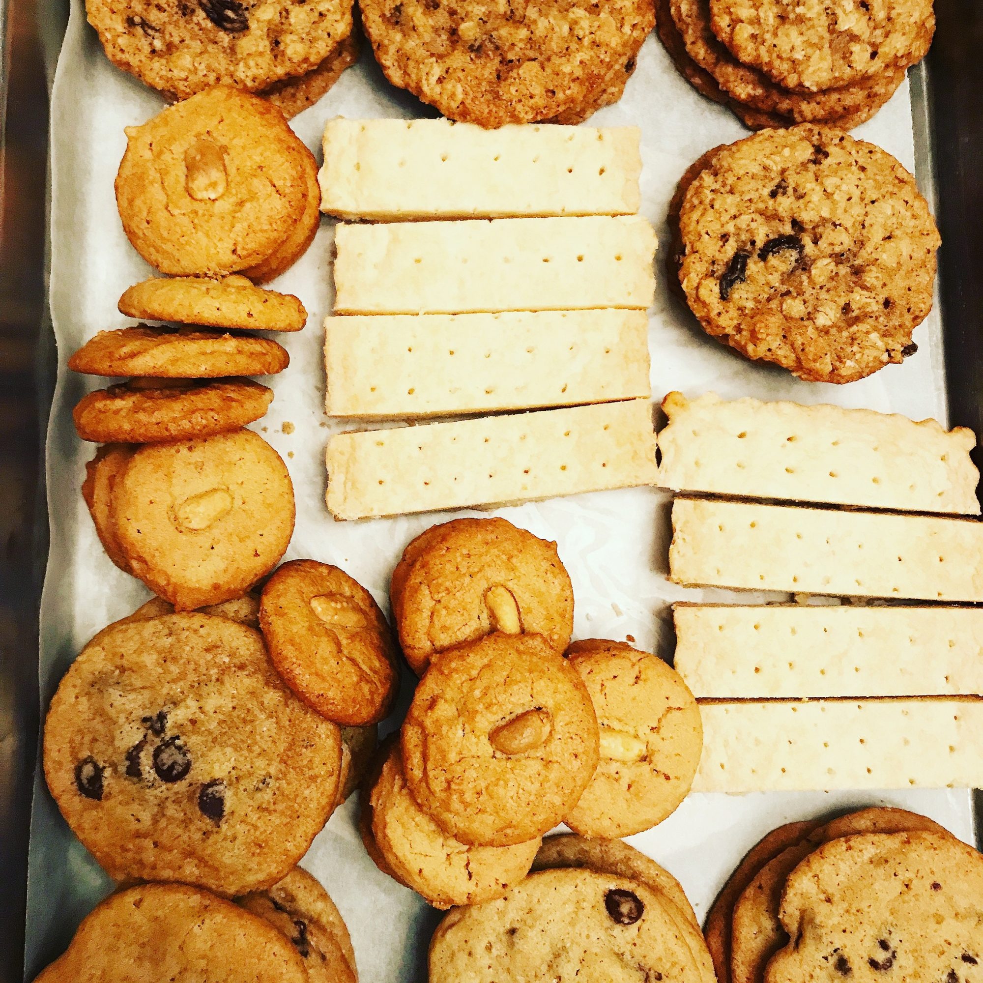 When I’m not volunteering my time with Slow Food, you can probably bet I’m either baking or reading (or snuggling with my rescue pit mix, Kicha). In the spring I enrolled in graduate school to earn a masters degree in library sciences. So, that thirst to be affiliated with those who embrace the written word is still strongly pulsing through my veins. About six years ago, I also formally started my permanent side hustle business, Smashed Muffin Goods. I began vending at farmers markets in the city and suburbs under the cottage law. After bringing some “just so happened to be” gluten-free and vegan cookies, I noticed them quickly becoming best sellers, so I gradually started adapting more and more recipes so that more and more customers could safely indulge. After a few years of markets, I decided to just stick to special and custom orders (as I have always worked in some other capacity while maintaining this “side hustle”), which allows me to focus more on specific needs. Sometimes that’s experimenting with a conventional order and sometimes it’s figuring out a way to make a cookie without traces of corn which may be found in vanilla (corn-based alcohol is often used) or baking powder (which commonly contains cornstarch).