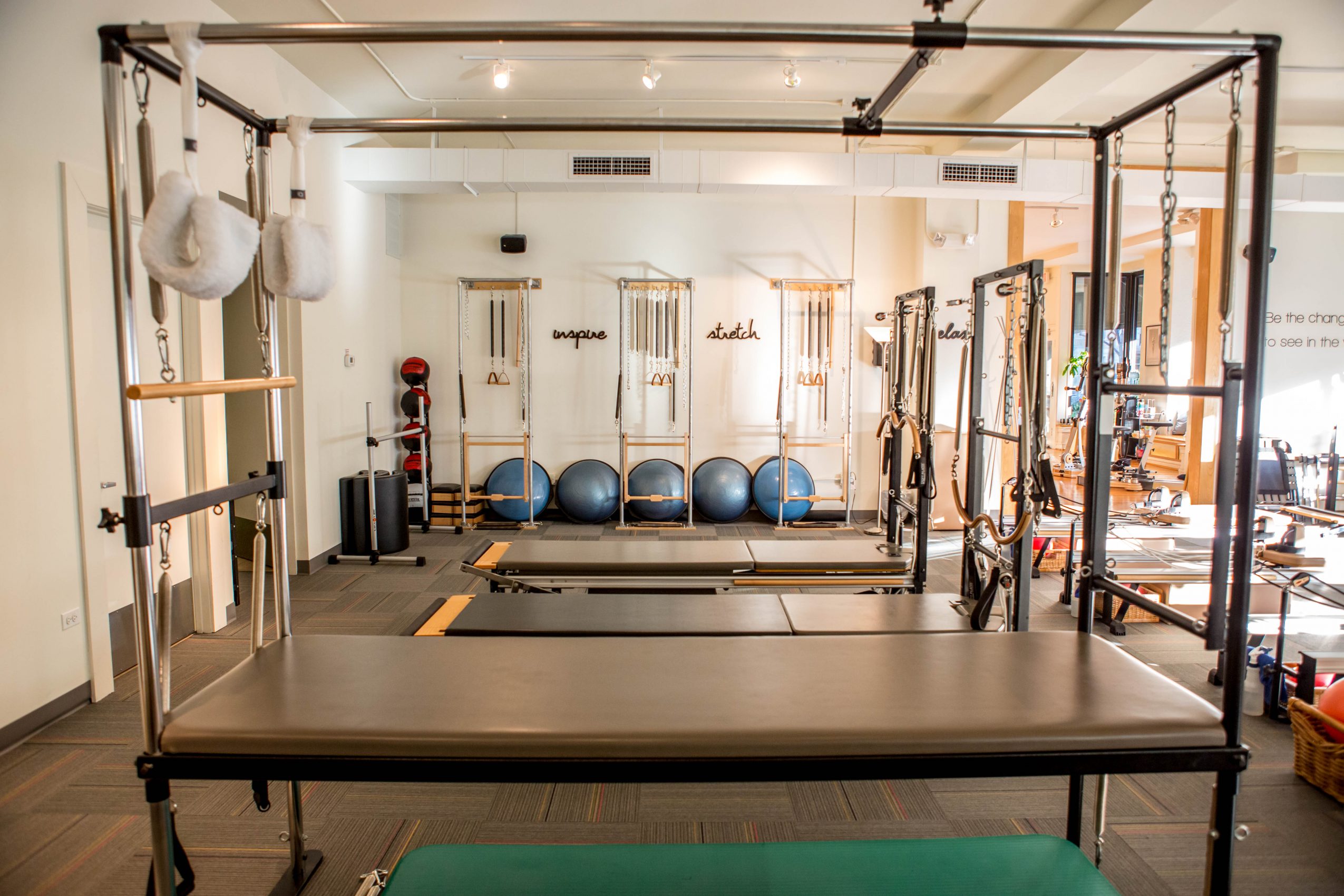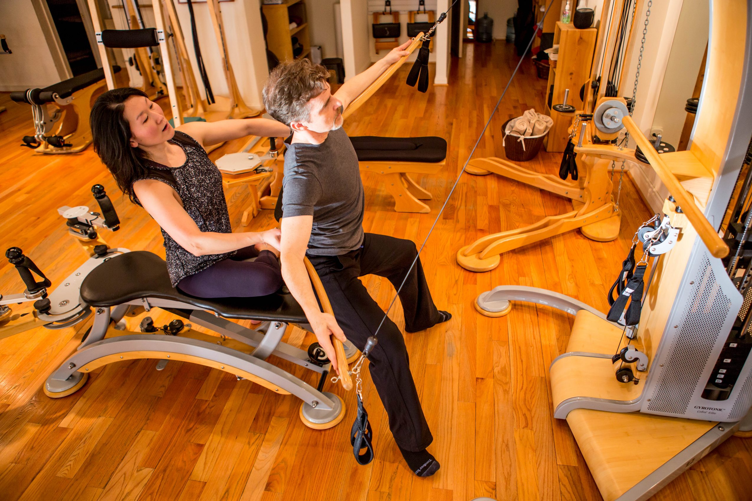 We are the largest studio in the Chicago area–possibly in the Midwest– with the most equipment for Pilates and Gyrotonic. Yet, we are not a gym–there is a sense of intimacy here. I know everyone by name, who they work with, why they started coming to us, what their progress has been. And I have had many opportunities to cultivate genuine friendships. The attention that the staff and I give our clients is pretty phenomenal.