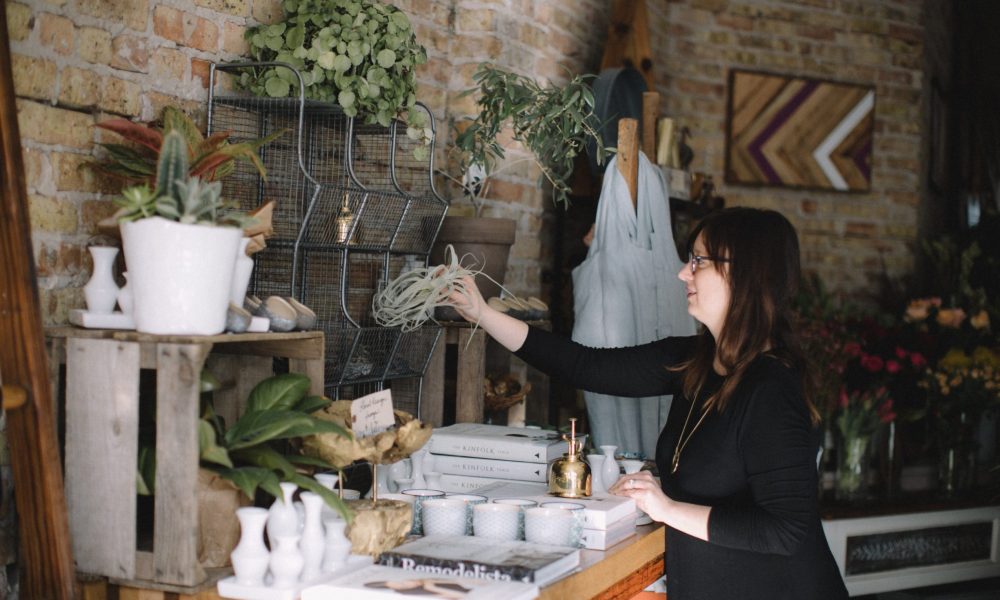 In 2002 I had a dream to open a little bucket shop filled with flowers, where guests would come and purchase bundles of blooms. Quickly it came to light that flower shops need a little more than just bunches of peonies to pay the bills, so I ventured into weddings. I’m completely self-taught, reading and practicing in the beginning as much as possible. With a degree in painting and art history I had an idea for texture, color and shape, and the rest came very naturally. We’ve moved the shop three times, each location expanding and offering more gift items and larger scale wedding design. The current location is 1800 square feet that up until a week ago was half brick and mortar gifts/flowers and plants, and half wedding studio. We just rented out a separate studio around the corner that will be focused on wedding production and a space for classes, which means we can expand our retail selections. Guests are always amazed that we have such a large selection of gifts ranging from candles, soap to rugs and furniture. It’s definitely more of a lifestyle boutique than just a flower shop. I’ve felt as though I’ve been running two separate businesses from the beginning and I wouldn’t have it any other way. This past April we celebrated our 15th anniversary and it was an emotion and wonderful day. I’m excited to continue to offer more to the neighborhood, it’s incredibly exciting!