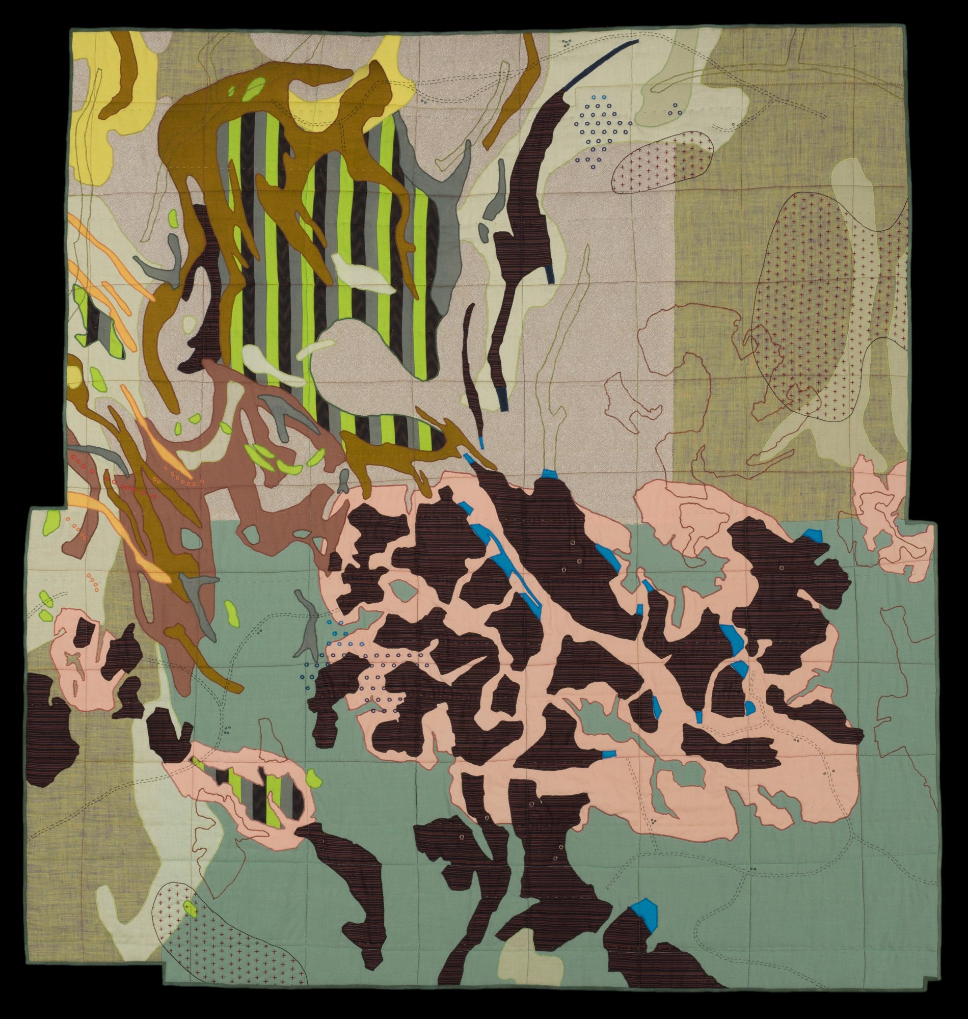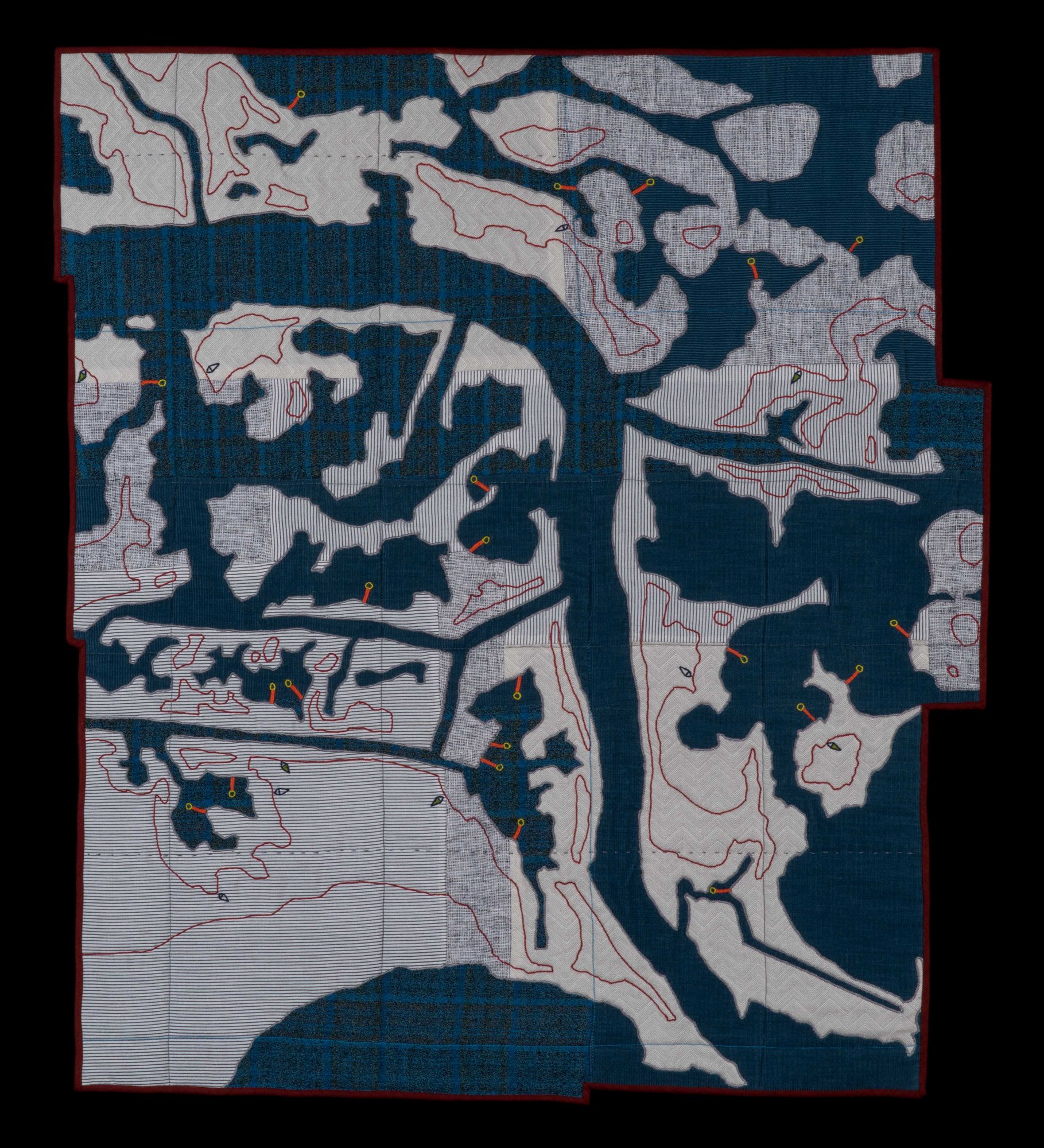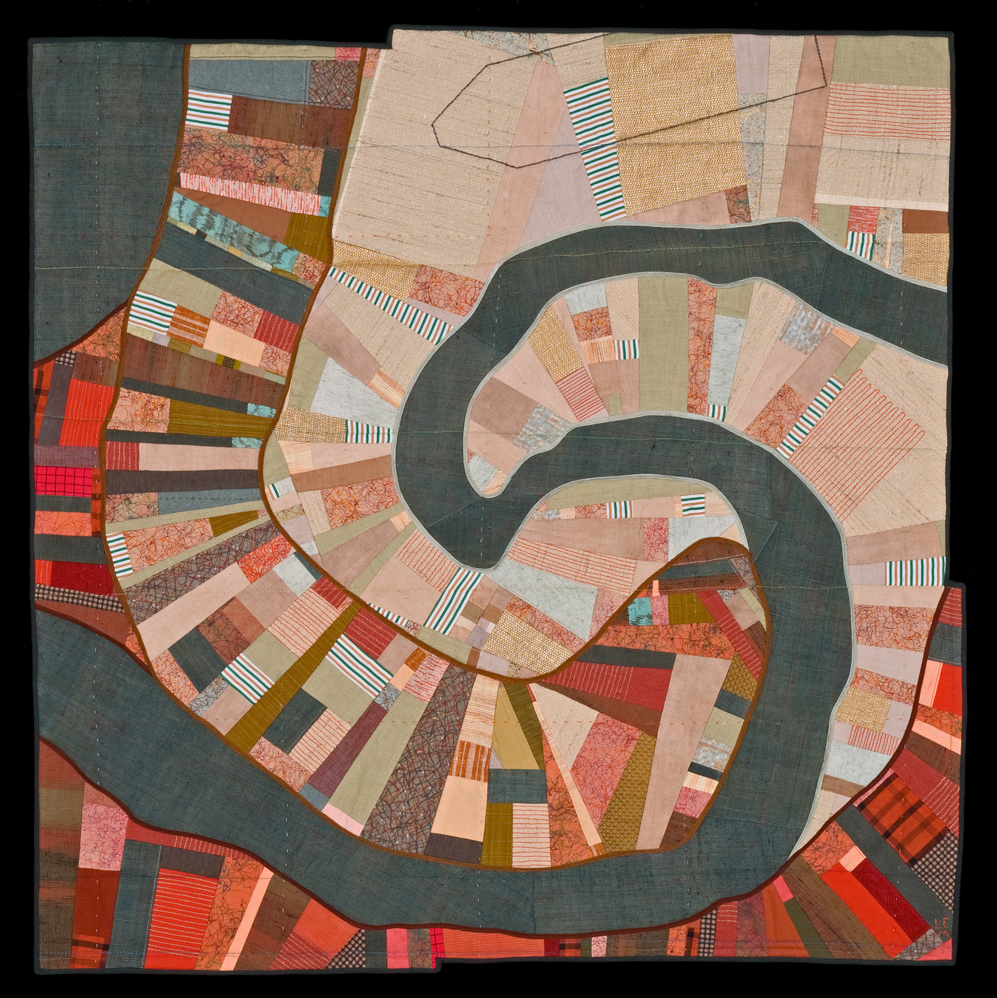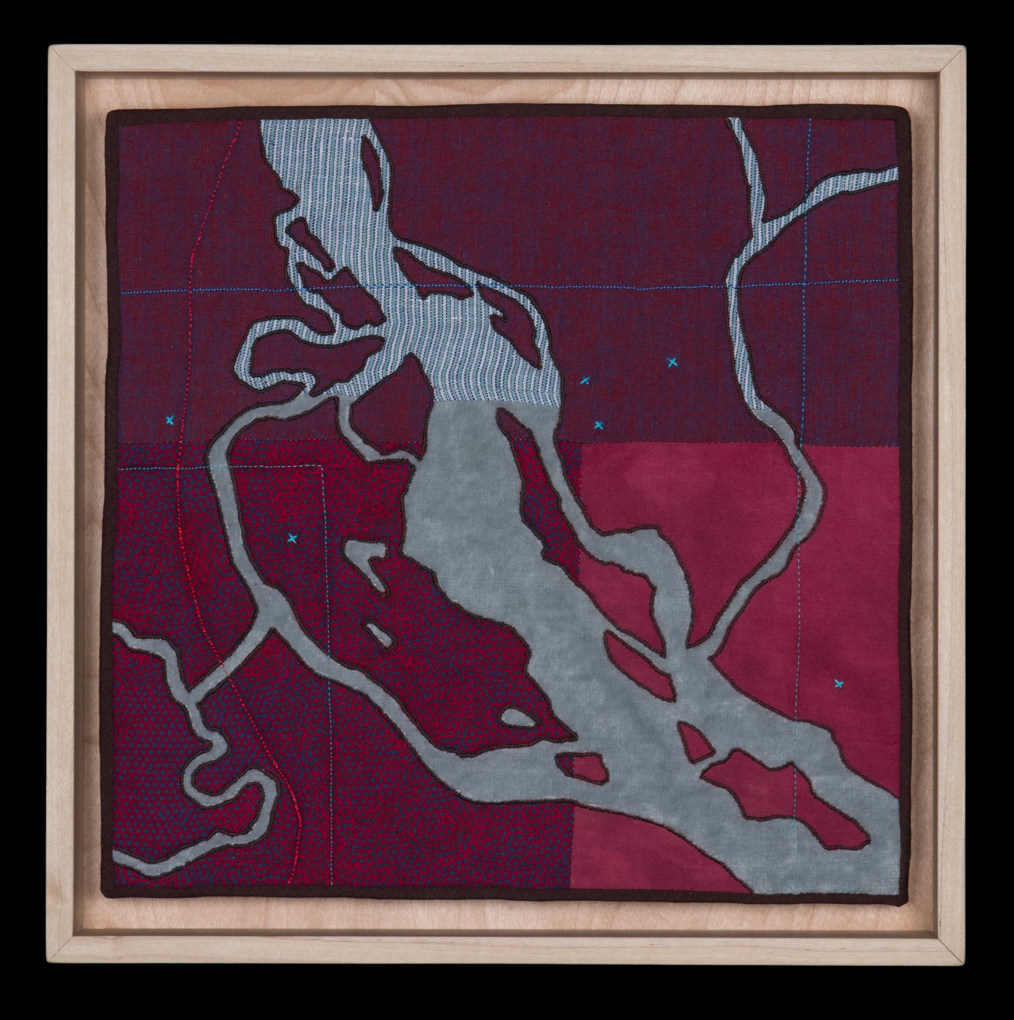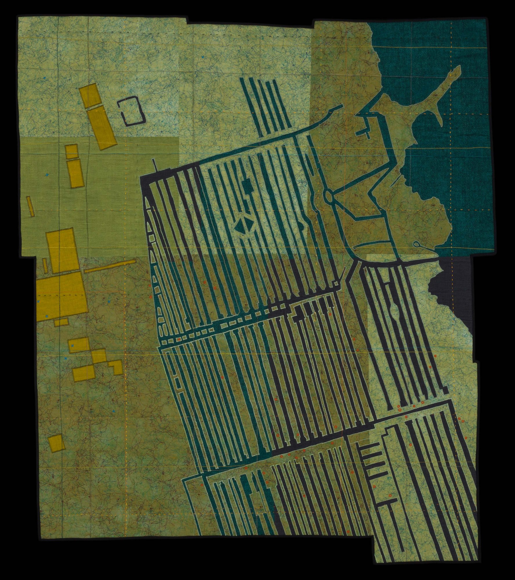 Since leaving college I have been making work that combines my interests – history, land use, science, design, color, and craft. Currently in my work, themes of agriculture, mining, recreation, climate change, and development are most common. I am pushing more towards using salvaged materials in keeping with the quilting tradition of re-use.
