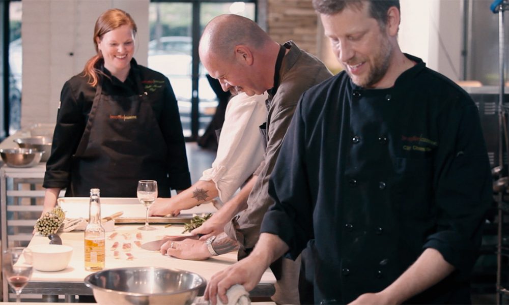 Obviously, my business partner, Clay Champlin. We try to share the work load so that we can have lives outside of Bespoke as well. Kim Shambrook and Jeannie Lukow since this was their baby and they entrusted us with it. Our awesome Bespoke staff… it takes a special person to do front and back of the house. Not only do they have to create delicious meals, but they are instructing our guests and entertaining them as well.