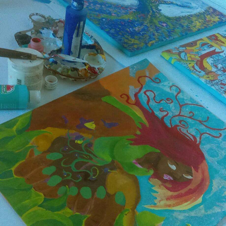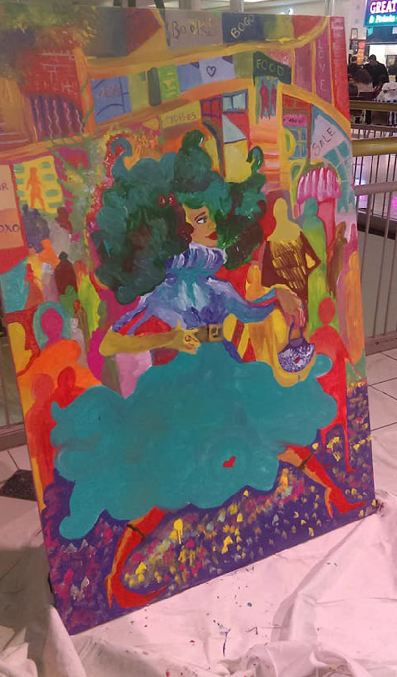 I pull from my experiences, family, and the world around me. I like to explore art and create things that are whimsical, beautiful, ugly and even uncertain. My art is a walking storybook, it’s full of life, flare and emotion.