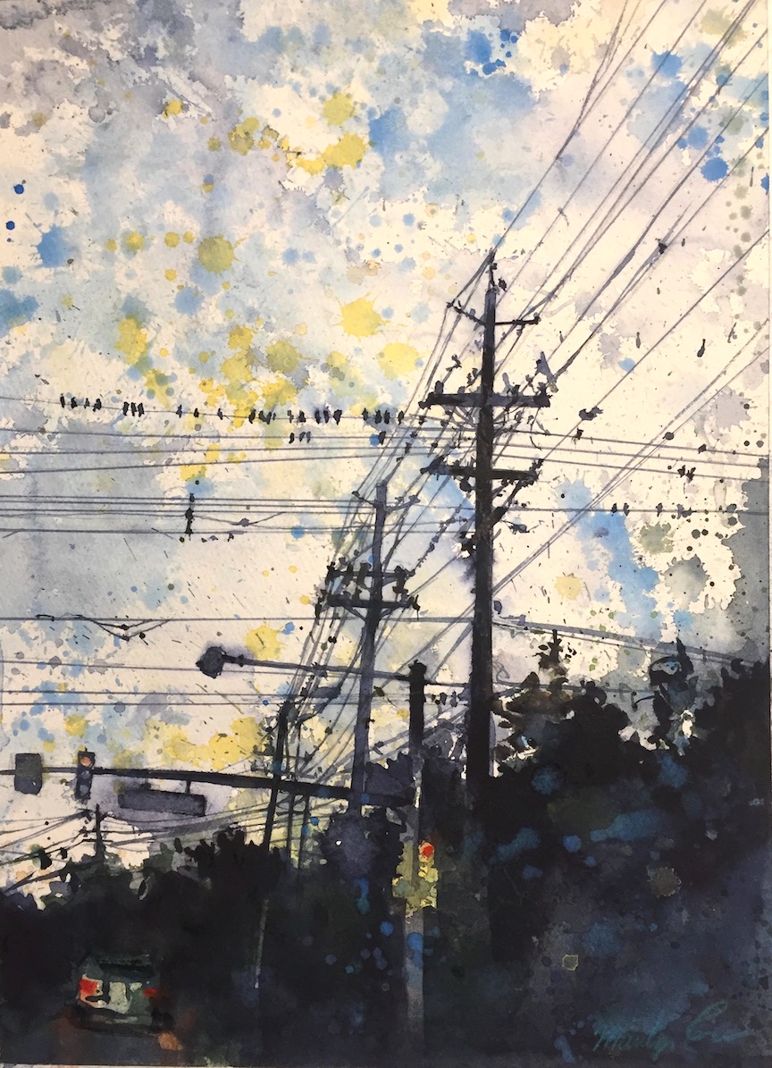 While my paintings take the natural world around me as their subject matter, they are really about edges and connections– the places where things meet: paint and paper; light and shadow; pigment and water; and the natural and manmade worlds. My work document an inner journey and an outer journey simultaneously.
