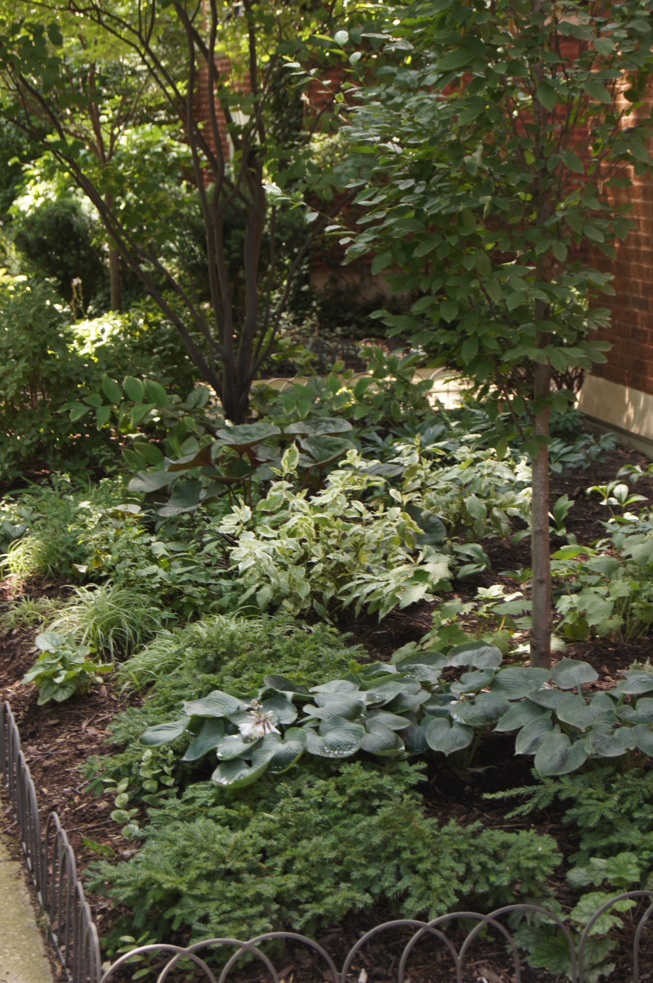 We subscribe to the theory “right plant, right place”. We believe that choosing the right plants for specific conditions will create lasting beauty. Our experience has taught us what works and where. For example, I have a roof deck with 30 containers that serve as a giant laboratory for testing which plants survive season after season in containers. Gardening in shade is also difficult. We have experimented with all varieties of plants in our own gardens to determine which ones work the best in shady conditions.