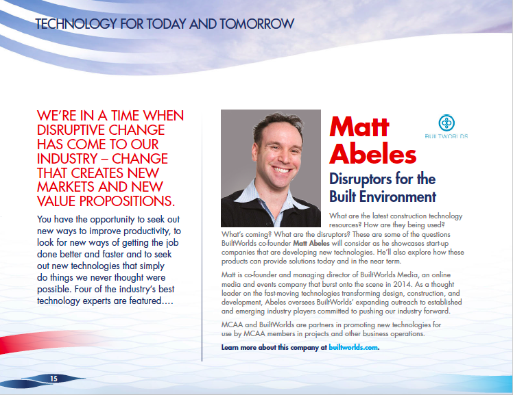 In 2014, Matt Gray and I began Builtworlds. At that time we started as a research company focused on helping companies understand what technologies would help them individually to help them not only be more innovative but also help them be more efficient in what is essentially the most inefficient industry, the building industry. We saw a large gap in the building industry, which consists of construction, engineering, architecture, and real estate, essentially a $9-$10 trillion industry that hasn’t changed its ways for almost a century. As we started to talk with presidents, founders, and CTO’s of these companies we realized, that it wasn’t that these companies didn’t want to spend money on investing in technology, but that there was a clear lack of understanding of what existed in the space as a whole. At that point, a lightbulb moment happened, and we realized if we were going to truly impact the building industry, we had to educate the industry as a whole.