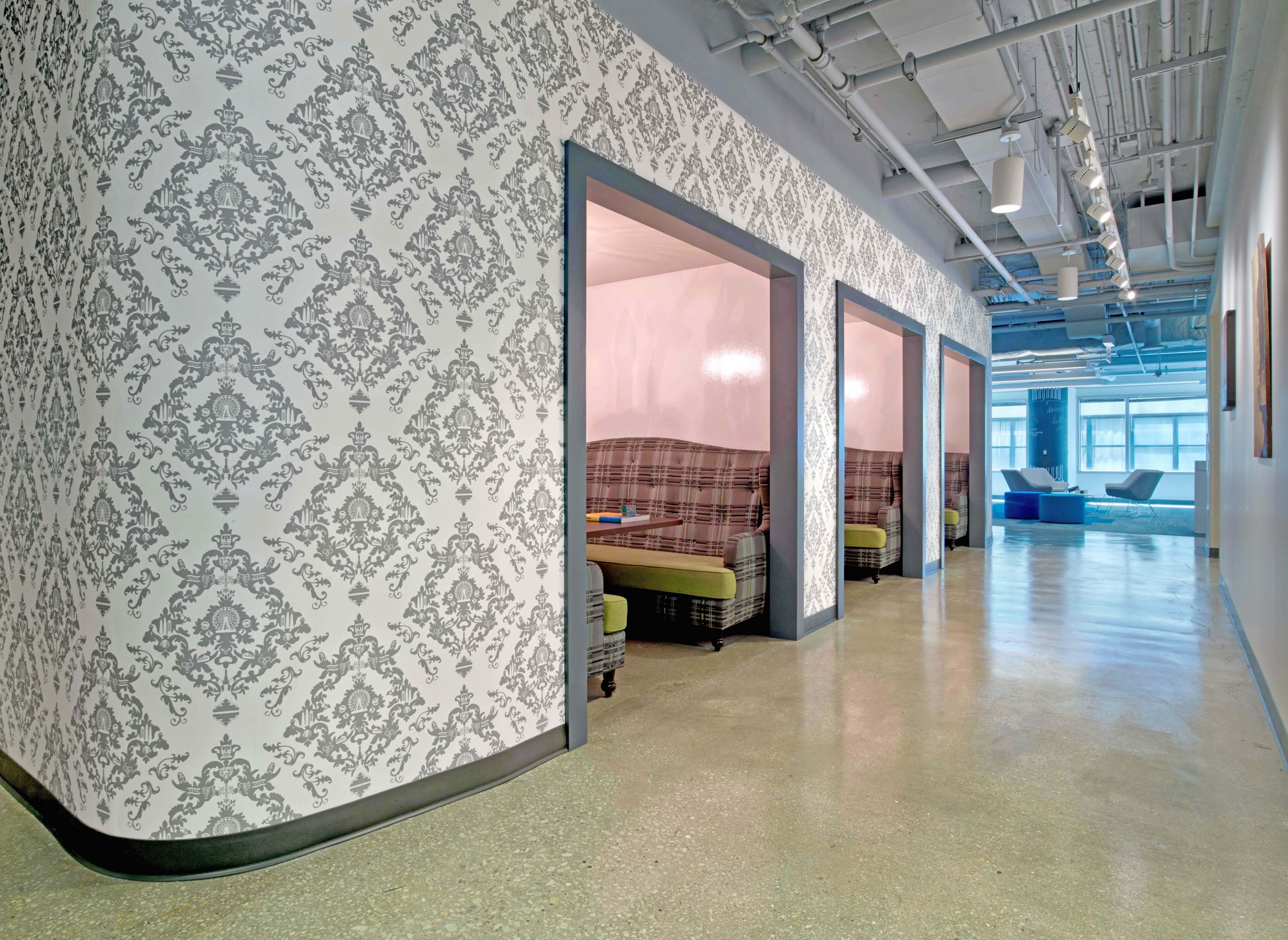 Experiential Graphic Design, being designing for a given physical space. I design, Custom Wallcoverings, Illustrations, Interactive Displays, Dimensional Displays, Digital Displays, Sculptural Pieces, Signage and Wayfinding. These elements can be found in corporate office spaces, hotels and retail environments.