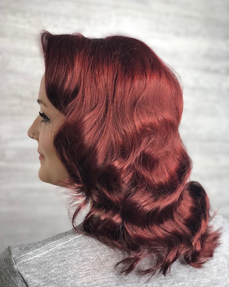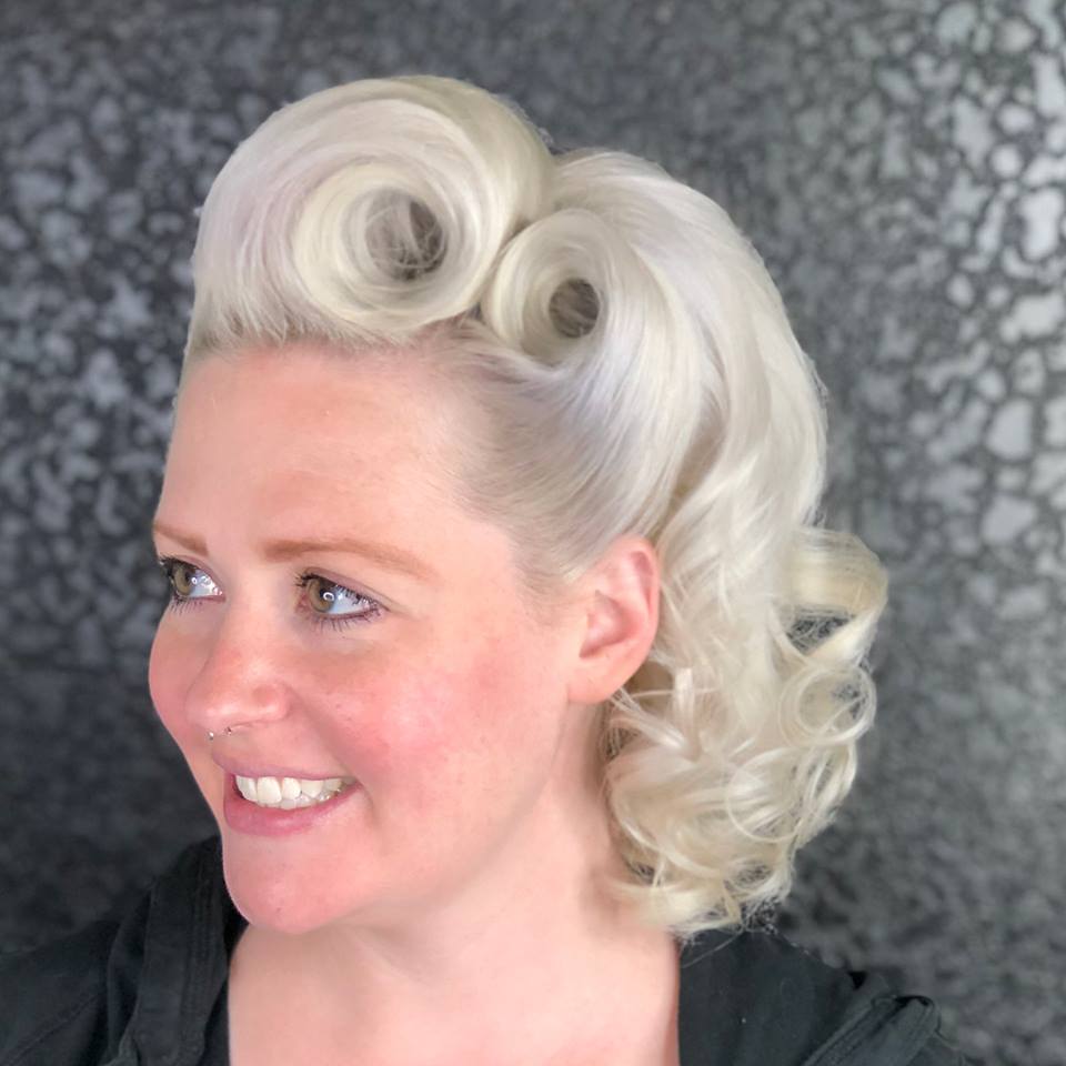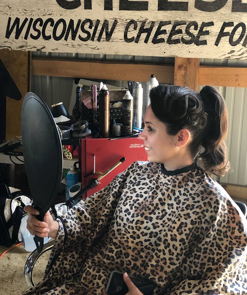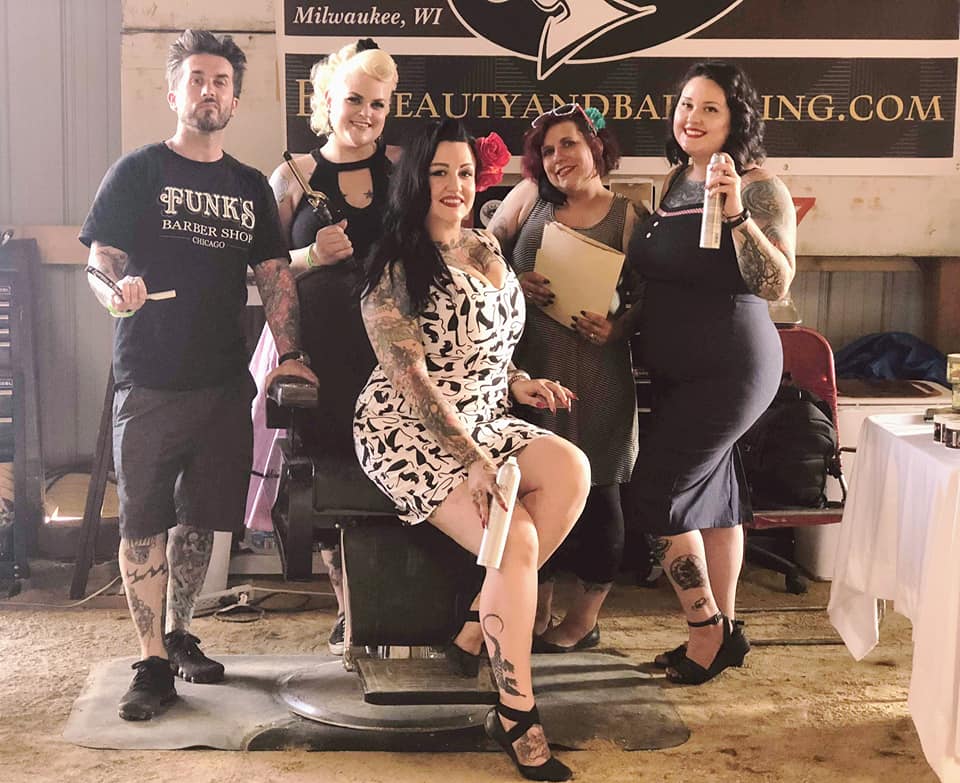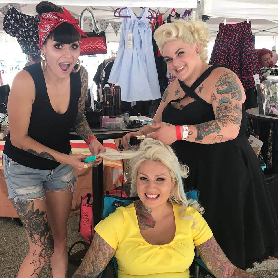 I grew up singing Patsy Cline and Leslie Gore songs into my hairbrush with my big sister. Those two worlds would collide again when I opened Bombshell Beauty Boutique in my rural hometown of Mendota, IL in 2014. It’s a funky little vintage inspired studio. This gem is roughly 90 miles southwest of Chicago. There isn’t much of a Rockabilly scene this far out, so after 3 1/2years I decided it was time to make my next move. I was going to be a Chicago hairstylist. I reached out to Twisted Scissors in Logan Square. You can find me cutting, coloring and styling there on Fridays and Saturdays. I still live and work in Mendota. My family is here. I have a 12 year old daughter and my son is a senior in High school this year so we are moving after he graduates. For now I make the 2+hour commute as I chase my dream of being a Vintage Hair Artist and working at one of the coolest salons in the city. This was the first of many moves I made to get my work to the right set of eyes and really take my career in the direction I want it to go. Eventually I’d like to only do styling. I started making connections through social media and the classes I would take. I started to collaborate with like-minded artists. I freelance for weddings, offer onsite styling for pinup contests and car show enthusiasts across the Midwest, work with Tokyo Rose Pinups as a hairstylist for photo shoots and have plans to become an independent educator offering vintage hairstyling classes in the near future.