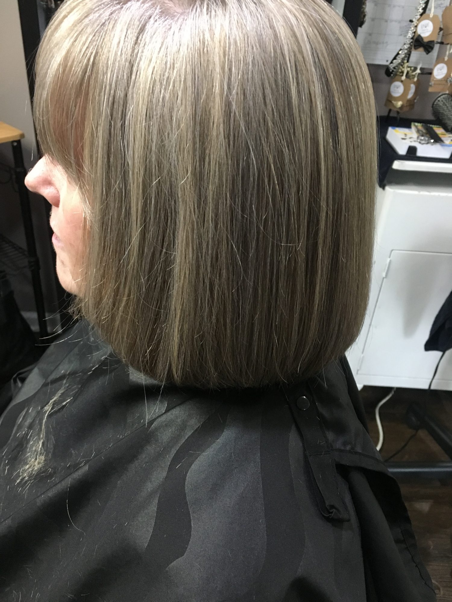 Since I was a little kid, I always wanted to help people, especially to make them happy. I really wanted to be a nurse, so I volunteered at a local hospital when I was 14. I discovered I couldn’t handle wounds or the sight of blood. It was then encouraged by a high school counselor to consider being a hairstylist. My family ended up moving further west of Chicago and I began Cosmetology school my junior year at my new high school. I loved it! I worked in a couple of salons in St Charles until I got married. I went to work in a medical skincare office doing face and body treatments but I missed doing hair. In my early twenties, I had 2 daughters, Alexandra and Abigail. They are the bright spots in my life. I found my career in hair styling allowed me flexibility to be with my girls. I started a mobile hairstyling and beauty business and started working with the VNA, visiting nurses assoc, doing hair and beauty services for hospice patients and those needing at home treatments in Kane and Dupage counties. I did that for a couple years but it was a lot of travel and some family tragedies brought me back to working in a salon.