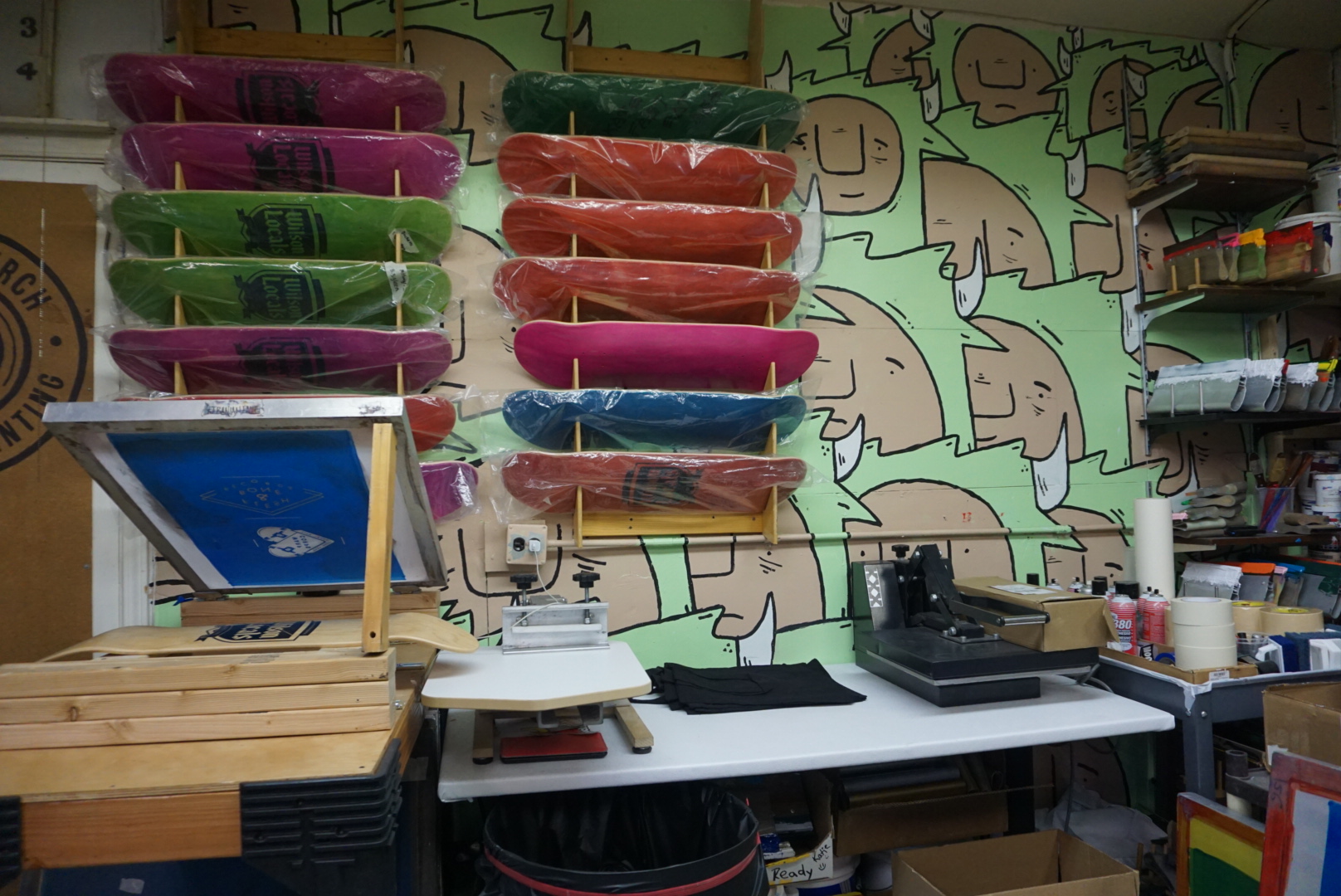 While working at this shop, I was printing on the side at home. I’d work days at the record label print shop, go home and print nights and weekends for friends bands, artists and things of that nature. I worked at the shop for six months before I decided to quit. This was one of the best decisions I ever made and I couldn’t be more happy with the choice to leave and venture out on my own. That was a little over six years ago. In that time, I’ve had three different shop locations. Countless upgrades in equipment and learned more than I could have ever imagined. I’m currently located on the North Side of Chicago and have been in this shop/warehouse space for the last four years.