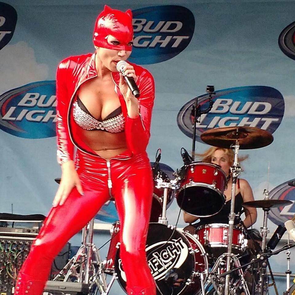 I remember seeing Madonna on stage and thinking “I want to wear a cone bra and sing”. I started auditioning for professional performing jobs right after high school. I got my start singing in theme park shows: SixFlags over Georgia, Disneyworld, and Universal Studios Osaka, Japan. Next, I traveled the world singing on cruise ships for a year. I ended up moving to Chicago to pursue theatre. Worked for a handful of local, Equity shows, as well as a national tour. I ended up getting an audition to sing with a Chicago based, all-girl cover band called Catfight. I’d never fronted a band before. I got the job! I remember thinking “I can’t believe I’m going to get paid to do this!”