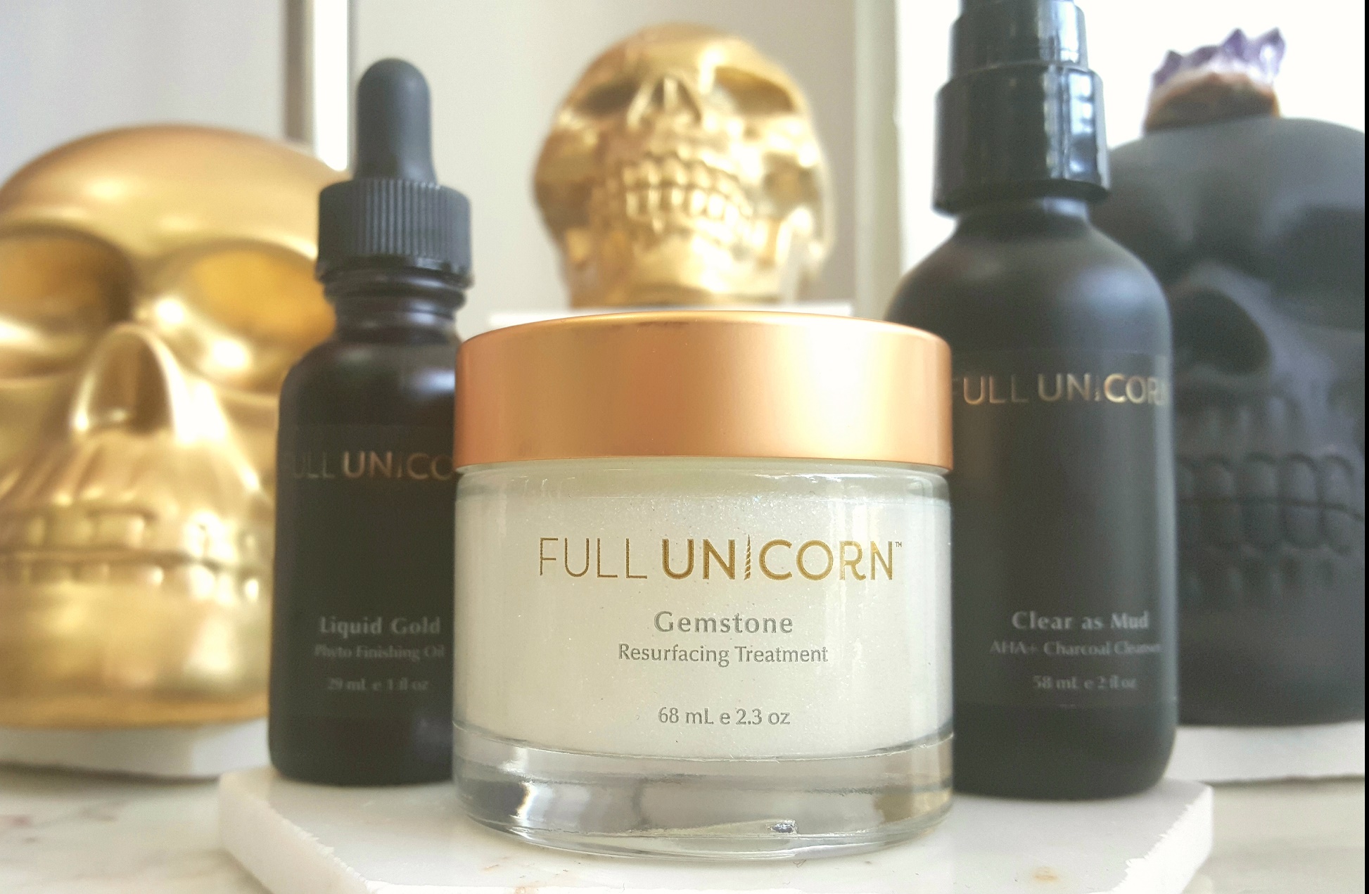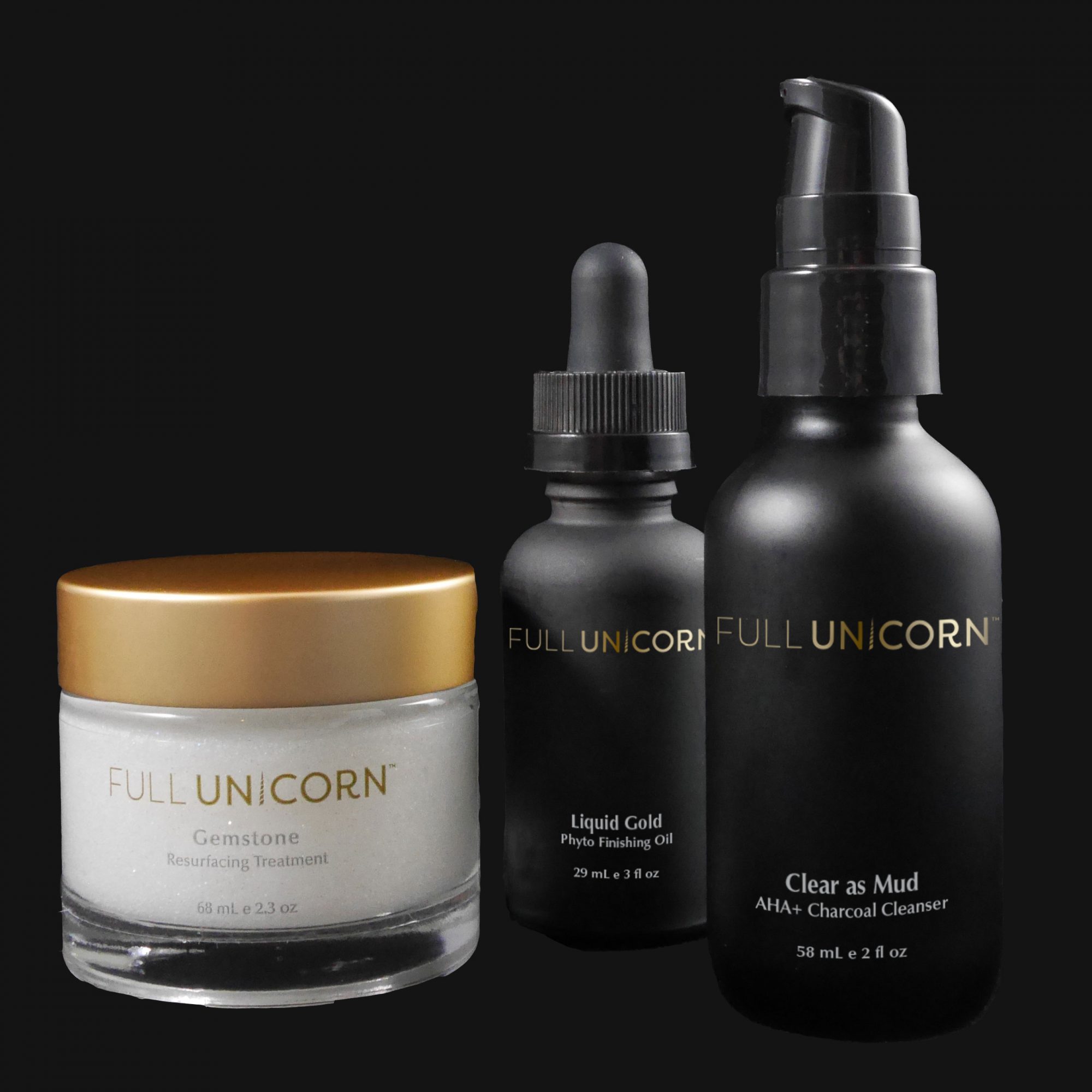 Full Unicorn is naturally assertive skin care mindfully crafted with zero waste ingredients that reveal inner radiance and stoke the fire that fuels each of our FU moments. The entire line is vegan and cruelty-free. Our packaging is recycled glass that can be re-purposed.