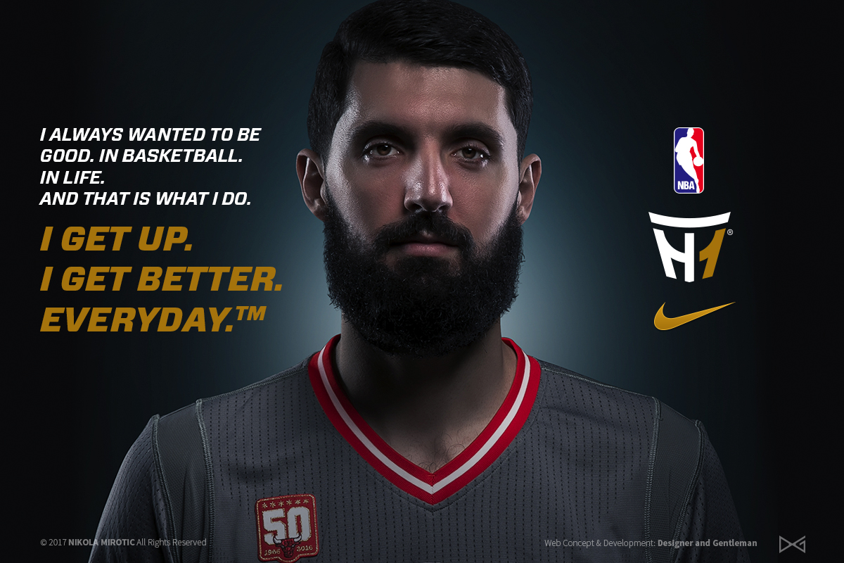 I’ve always had two great passions in my life: art and sports. My love and understanding of the sports industry led to the great privilege to work with a former player of Chicago Bulls, Nikola Mirotic. Such a great guy! Fans of Chicago Bulls do remember how difficult the previous season was for Nikola’s career. After a significant injury at the beginning of the season, he did not know if he is going to continue playing basketball. That is when he realized he needed a branding company to represent his statement to his fans. For him, we created probably the best most attractive website in the NBA. We established the logo, tagline, brand statement, and solid platform, where we could work even more and extend the brand message: Get up. Get Better. Everyday.™