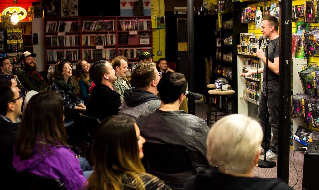 Wet Cash was founded in early 2016 by four comedians Dan Muller, Jacob Lowrey, Peter Kemme, and me, Noah Rocklin, more recently we’ve been joined by Terence Hartnett as well. We all moved to Chicago to take advantage of the great comedy scene here and after performing at local showcases we decided that we wanted to have a show where we could highlight our own unique senses of humor. Working the unconventional venue of a comic book shop means that we get to produce exactly the sorts of shows that we would want to see. We regularly feature comedians who you can see at the comedy clubs in town, plus our own off-kilter ideas in an intimate, BYOB environment, and it’s earned us a loyal group of regulars.