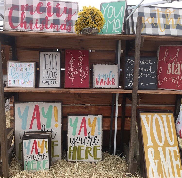 I am a sign maker. I design and hand paint every sign that Little Red Porch sells. All the signs are framed with reclaimed lumber from buildings that my husband and I take down. It’s a process and super time consuming, but I feel like the extra effort sets me apart from other sign makers.