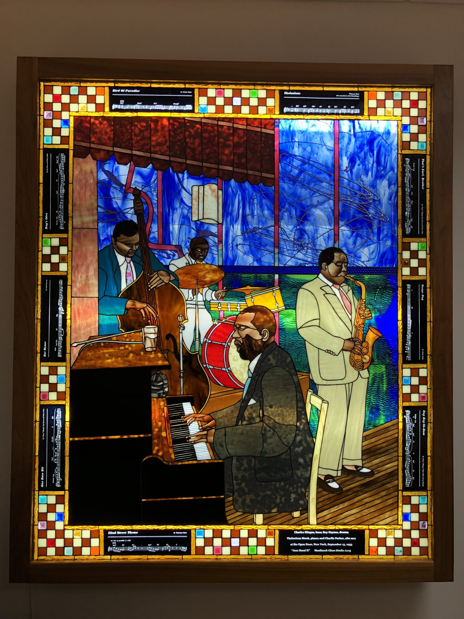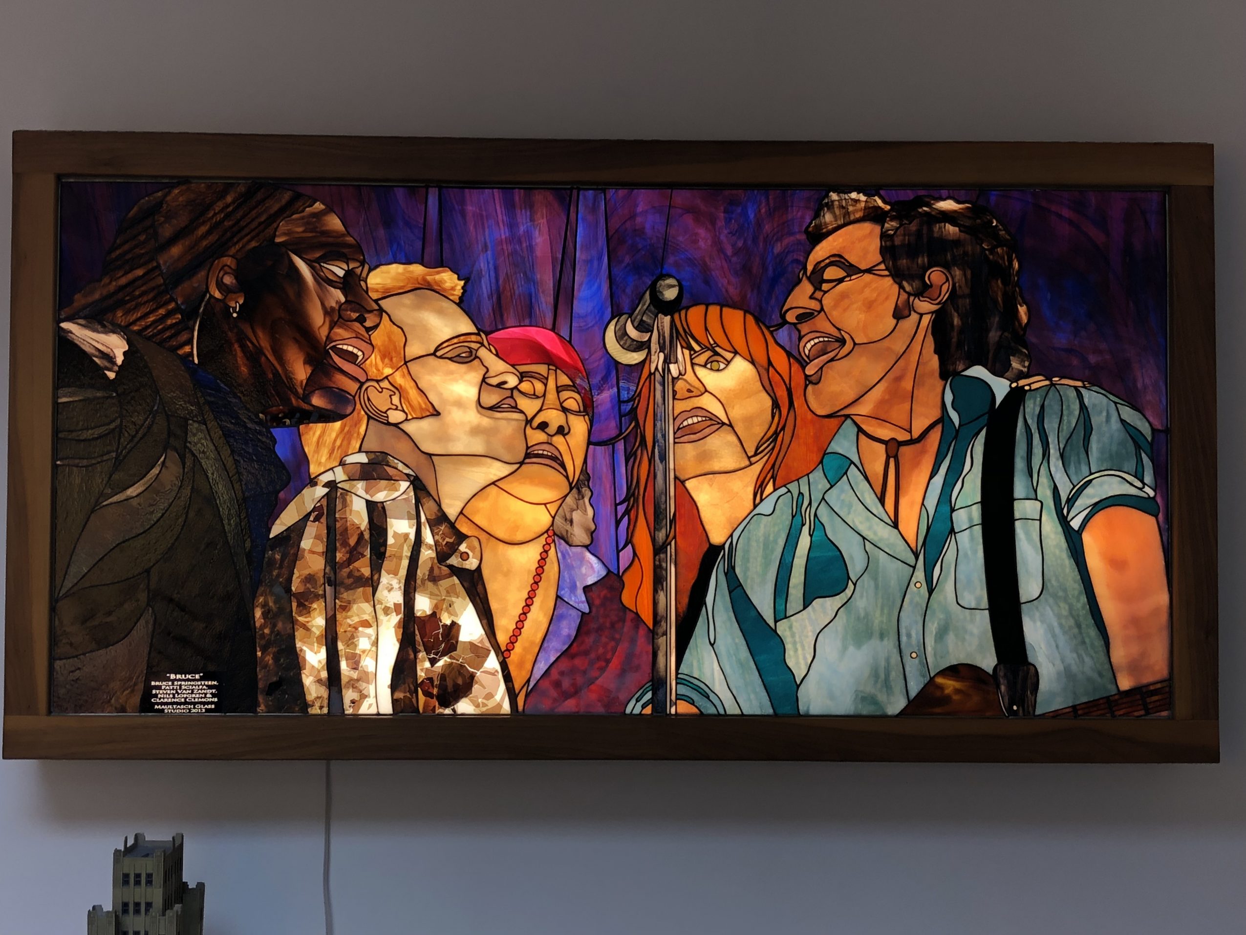 I’d also be happy to send you pictures of my other glass panels though Badlands, named after the Bruce Springsteen song, is one of my favorites. The book the woman is reading has words from Badlands which is the only song that Bruce plays in every concert. I think of it as his anthem. Thanks for taking the time to read my bio. I really appreciate it.