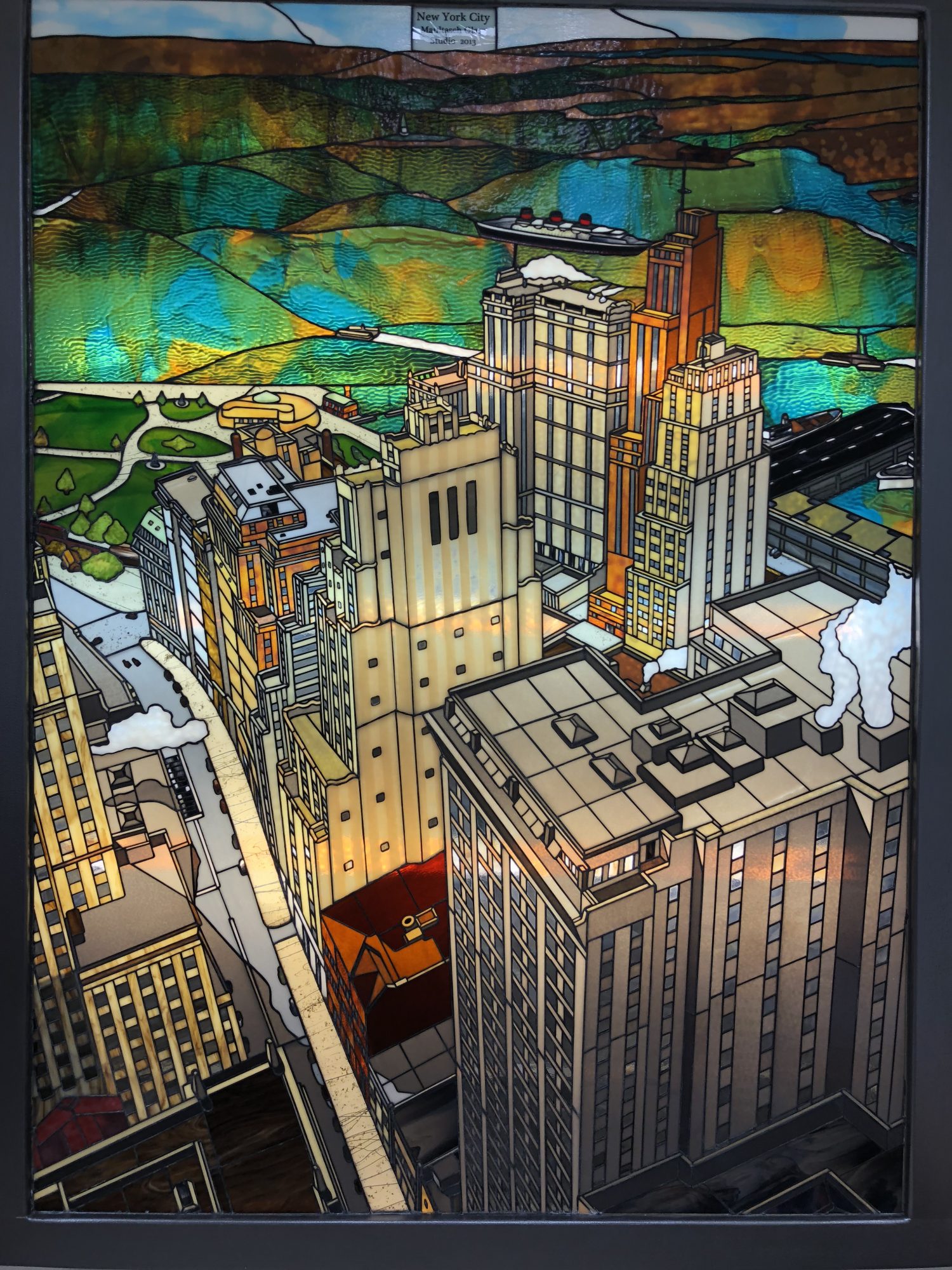 In 2011, I started Maultasch Glass Studio and created many large-scale panels such as Badlands which is the panel you have profiled. I have many other panels which I think you might like as Chicago has a reputation as a city that loves stained glass. I do not use any paint or enamel in my panels, only handmade, hand shaped glass. The process is referred to as the copper foil method though I have expanded it by using metal wire to add strength to the panels. It is labor intensive and every piece is hand cut, wrapped in copper foil and covered in a tin lead solder. If you want a more in-depth discussion of the process and the current world of stained glass, I’d be happy to discuss it with you.