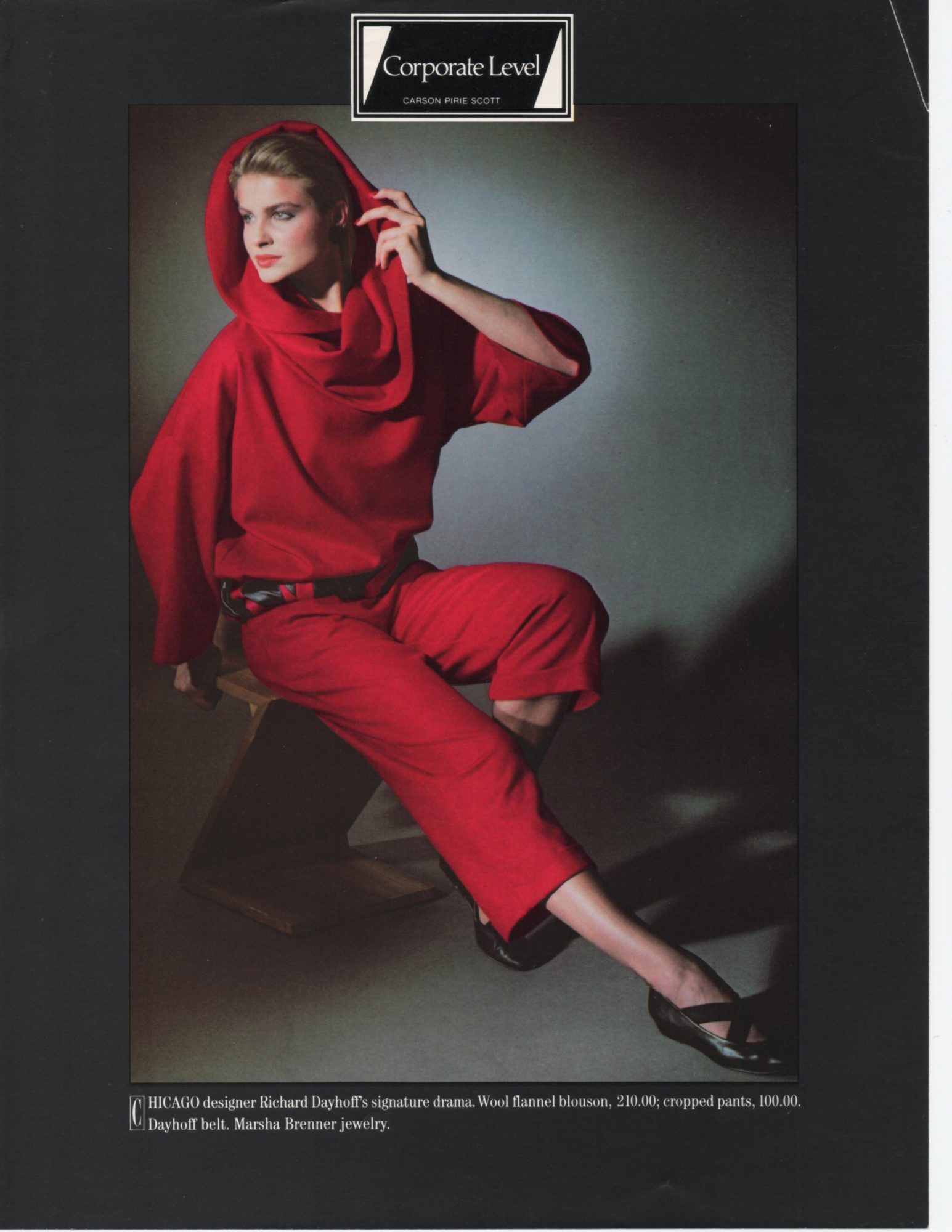 After I won the prize at that show, the Academy told me that 3 local Chicago boutiques wanted to sell my designs. But I was poor, had no money to make them, so called Andrea for financial backing. She gave it to me, and we became business partners – a woman who put her money where her mouth was, to show her faith in my talent. And that was when RICHARD DAYHOFF Design was born, in 1983.