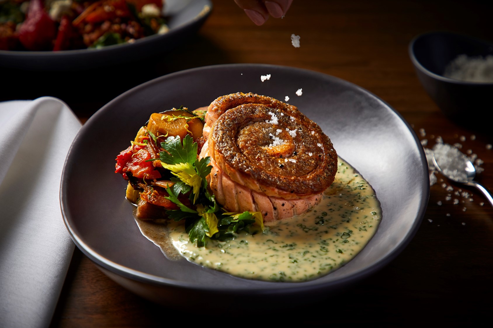 I did the 2-year program and finished on time. I did an internship with Chef Didier Durand at Cyrano’s Bistro. I worked for him throughout a school. I was into French cuisine at the time. Once I was out of school, I worked with Chef Michael Kornick at MK. Then I helped him open up MK in Northfield. I went to Mirabel Life and Balance, a spa resort in Arizona. I was chef de cuisine there for 3 years. It was a different type of cuisine where you couldn’t use butter or cream; just a lot of vegetable-and-grain cooking and lean proteins. It was the complete opposite of what I had been doing and it opened my eyes to a different style of cuisine.
