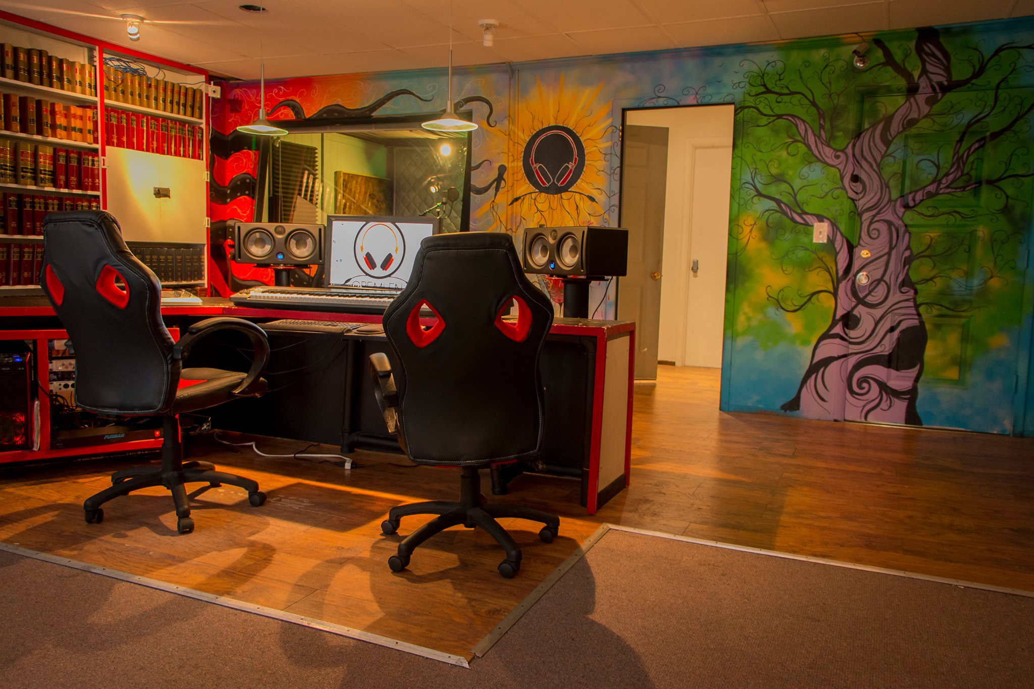 Shortly after, I was a student at Waubonsee Community College in Sugar Grove and my drum instructor had a small studio in downtown Aurora. He was only paying $100 a month for the spot and asked me if I wanted to take over his lease. The day I turned 18, I did so. It was literally a square room with cement floors but it put me in a prime location in downtown aurora and I just kept reinvesting any money I made back into better equipment and making the room look better.